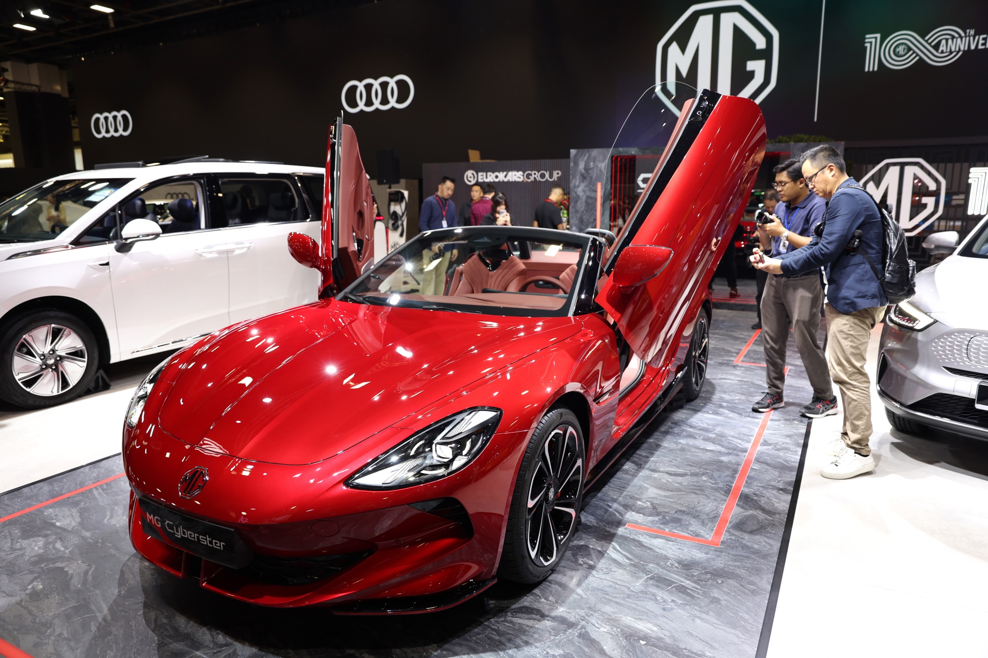 一辆MG Cyberster电动汽车在一月的新加坡车展上。摄影师:Lionel Ng/Bloomberg一对年轻情侣俯身接吻,太阳投射出紫色、粉色和橙色的光影,映照在城市天际线上。在背景中,一排时尚的电动车正在充电。远非广告一部新的浪漫喜剧,广告牌和社交媒体帖子正在敦促新加坡“爱上电动车。” 这种对传统电影题材的转变只是政府推出的一项活动的一部分 —— 该活动还包括一部模仿好莱坞动作惊悚片风格的短片,以及一位喜剧演员揭示有关电动车的谬误 —— 旨在鼓励居民使用电动车。这个城邦计划从2030年开始逐步淘汰内燃机车辆的新注册,并在同一年拥有6万个电动车充电点。