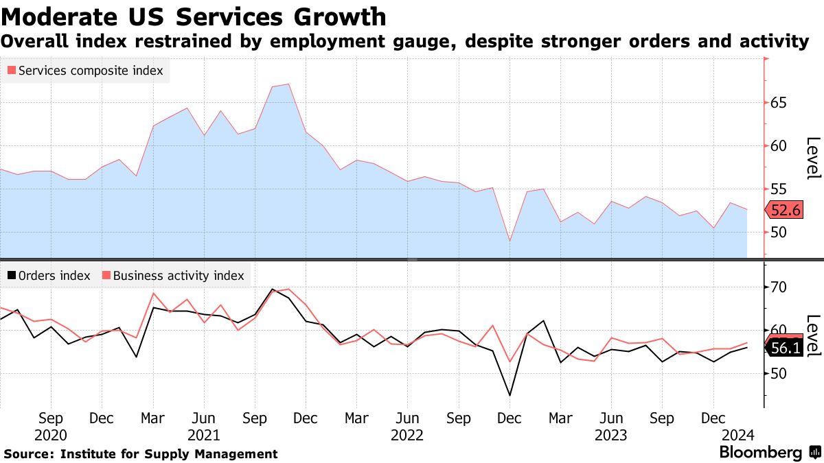 美国服务业增长放缓,而订单和业务活动有所提升 - 彭博社