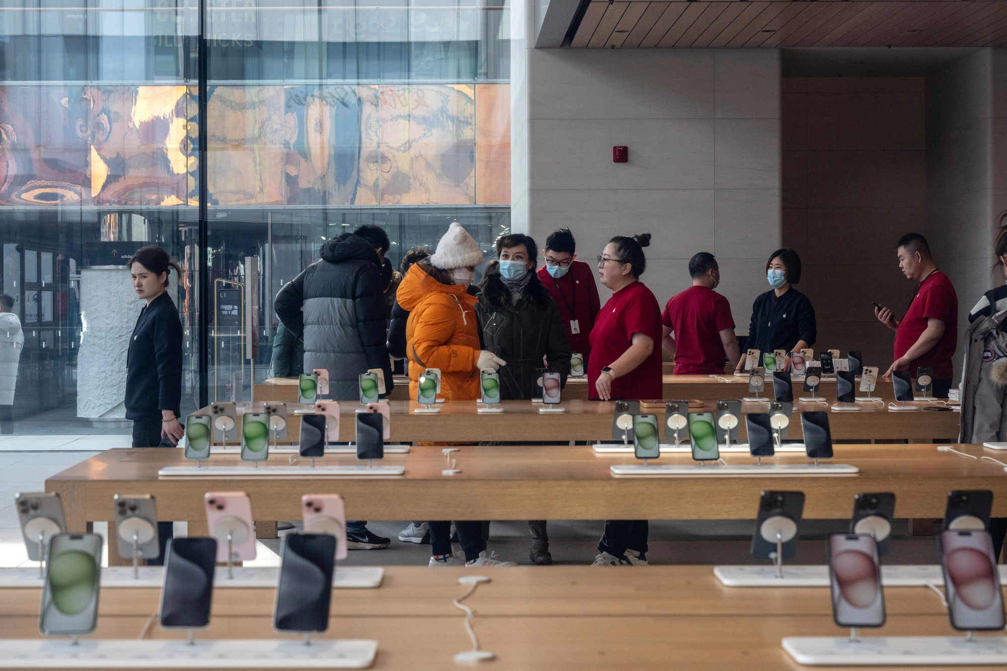 北京,中国,2024年2月2日星期五,苹果商店的客户。
