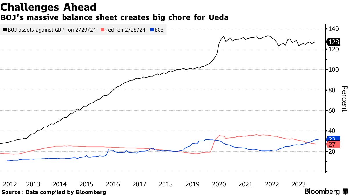 预计日本银行将在本月或四月启动其规范化进程,首先是放弃负利率。在此举之后,自2007年以来的第一次加息,它计划多快解决庞大的资产负债表将成为投资者关注的关键问题。