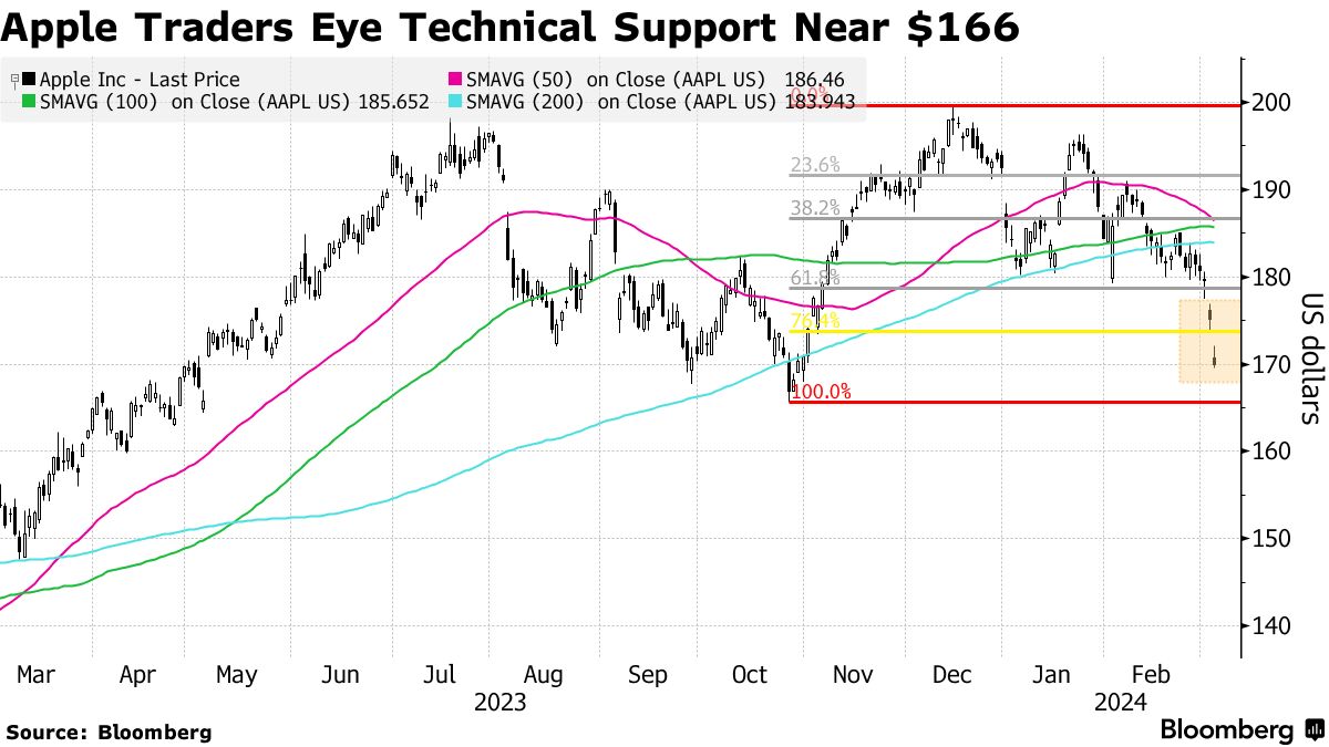苹果(AAPL)股价暴跌这是交易员关注的水平 - 彭博社