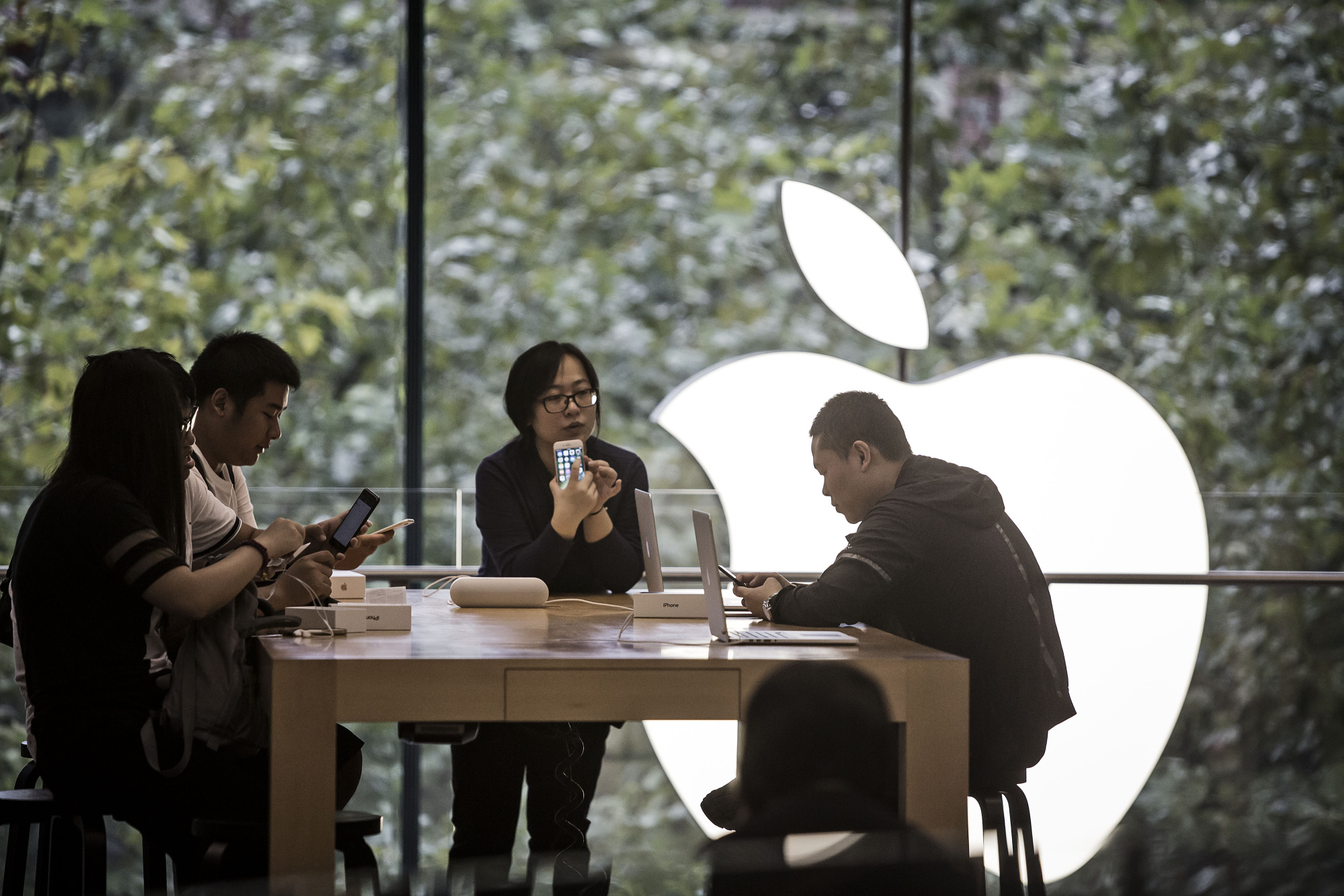 在上海的一家苹果商店的顾客。