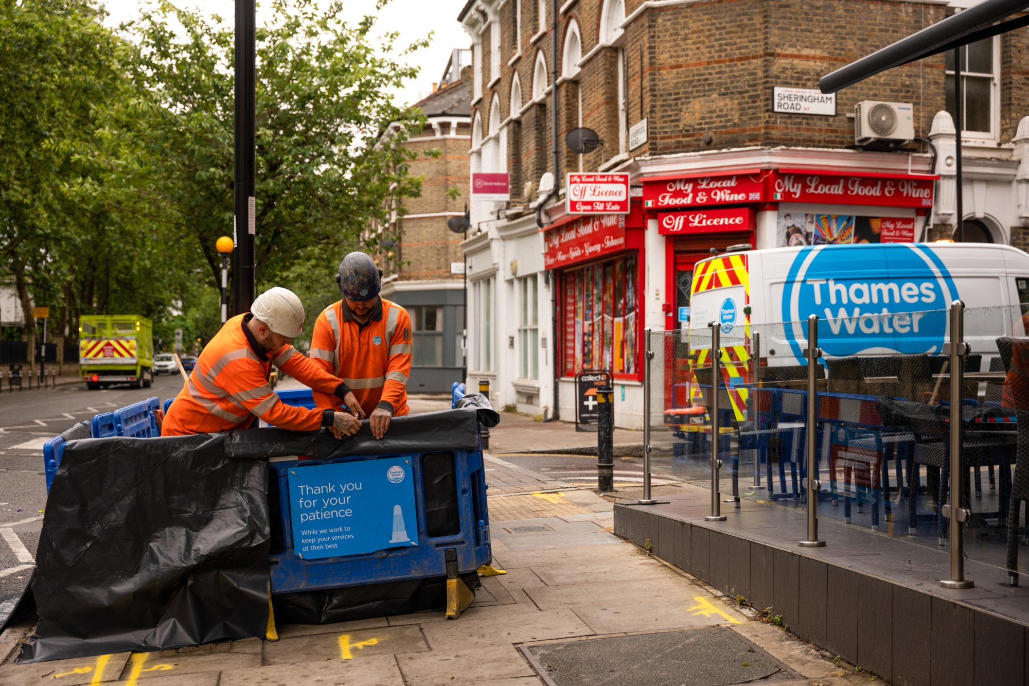 维护工程师在伦敦泰晤士水公司事故现场工作。