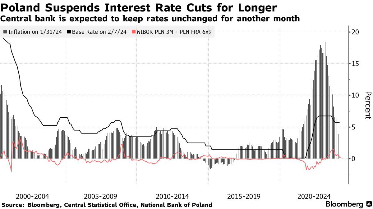 波兰将保持利率稳定更长时间以防止通货膨胀的回归 - 彭博社