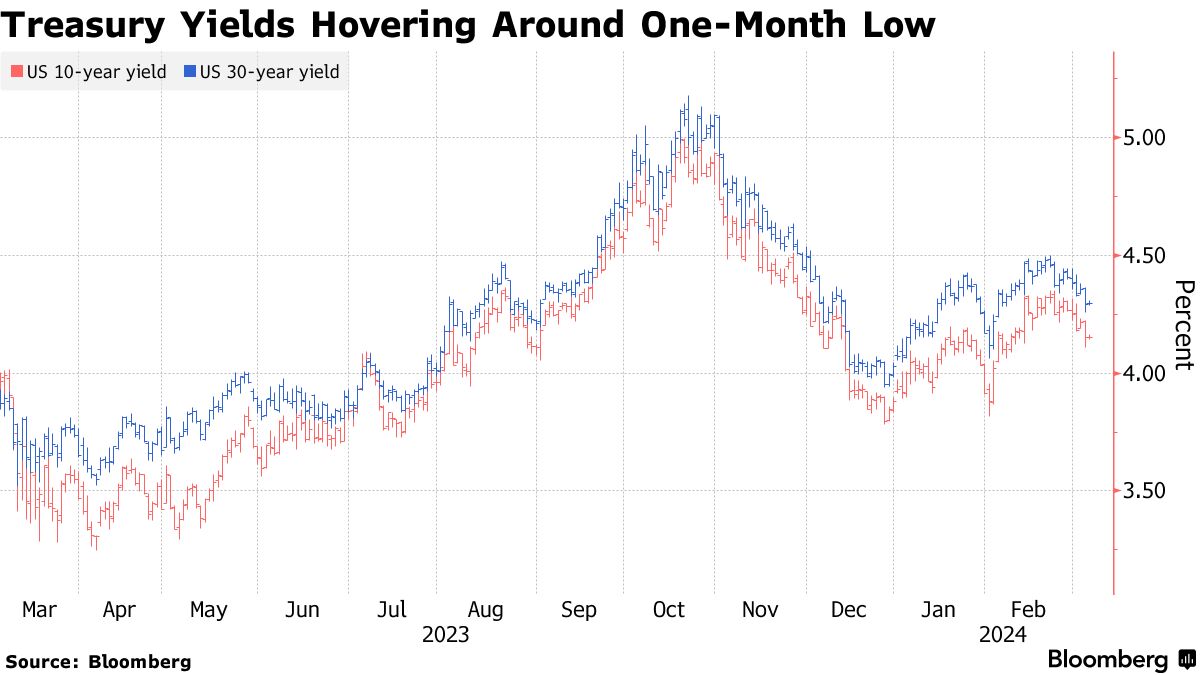 摄影师:Al Drago/Bloomberg在美联储主席杰罗姆·鲍威尔发表讲话和关键劳动力市场数据公布之前,国债出现下跌,这将考验债券投资者对美国降息的信心。中央银行家将在众议院金融服务委员会作证,可能为政策制定者在三月底下次会议上传递出一种不那么鸽派的信息。在鲍威尔露面之前和之后,有关私营部门就业创造和职位空缺的报告可能动摇对周五公布的更广泛就业数据的预期。