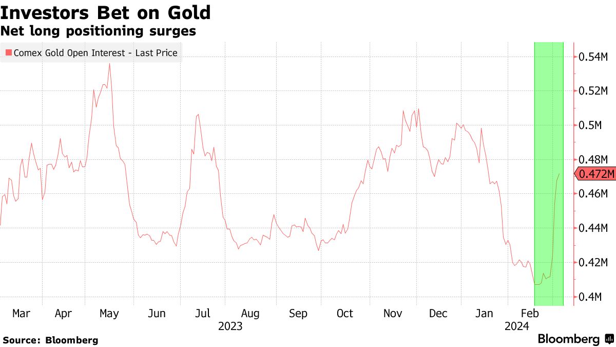 最新的Comex数据显示,基金经理增加了新的多头头寸,推动了黄金的涨势。持仓量的上升意味着投资者对黄金变得更加看涨,而不仅仅是平仓现有的空头头寸。