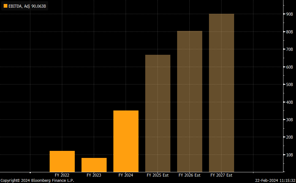 英伟达息税折旧摊销前利润F2025-2027共识: