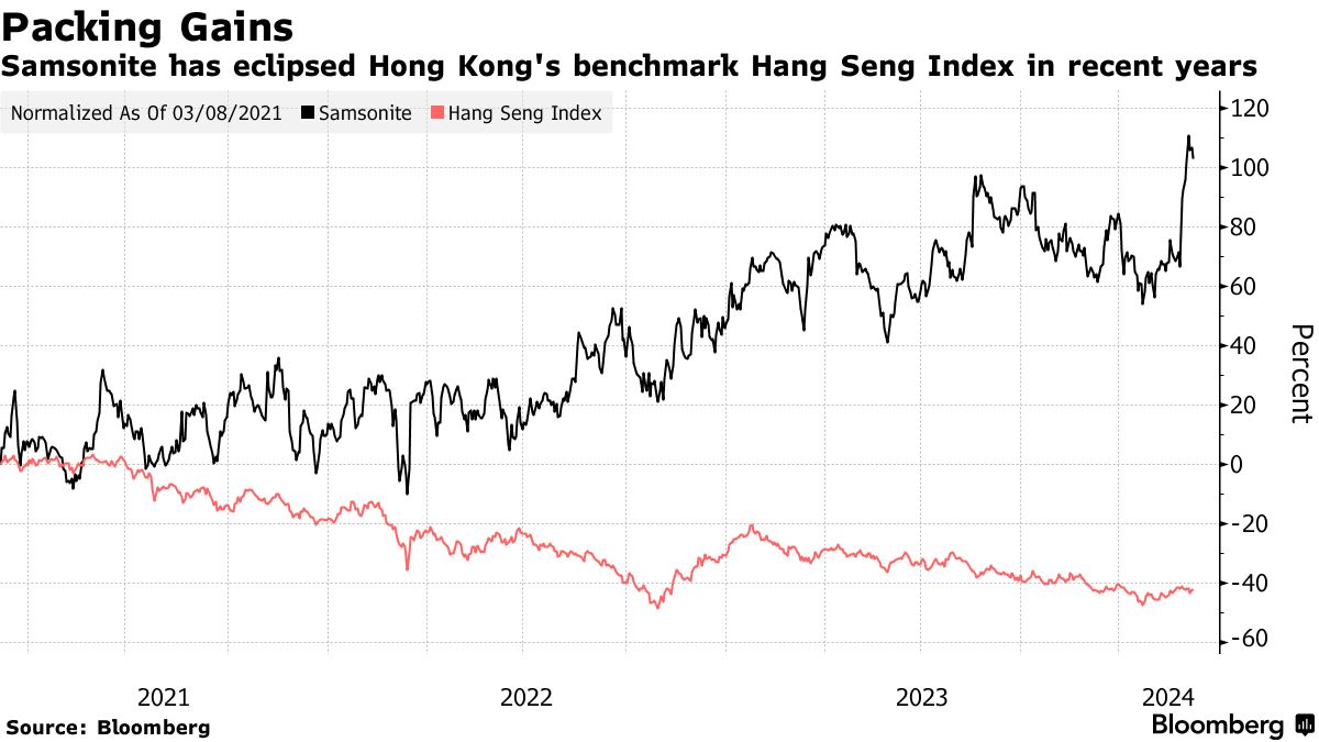 Samsonite的市值约为港币420亿美元(53亿美元)。根据彭博报道,2月27日,随着该公司考虑各种选择的报道,其股价飙升了高达18%,自那时以来股价又上涨了8%。
