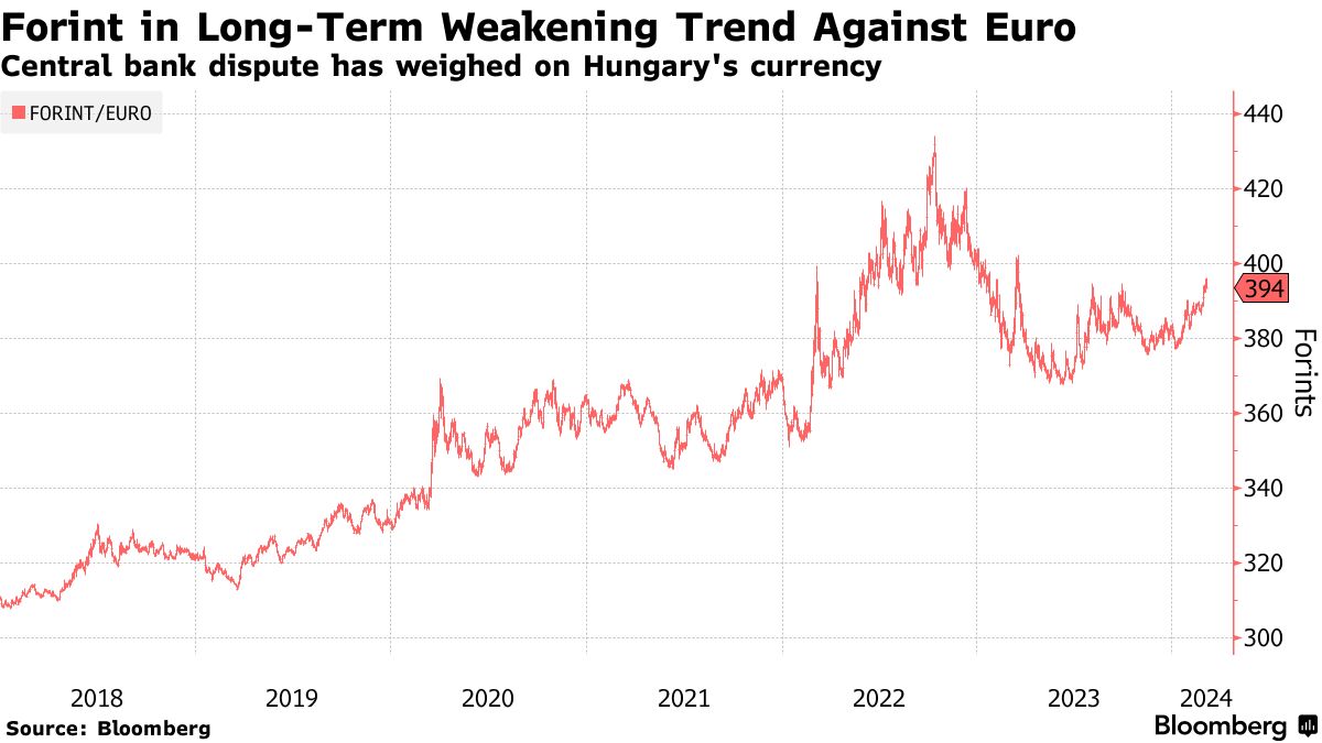 不断升级的争端暴露了布达佩斯经济政策圈中的新一层功能紊乱,令投资者感到不安,并导致福林兑欧元汇率一年来最低。