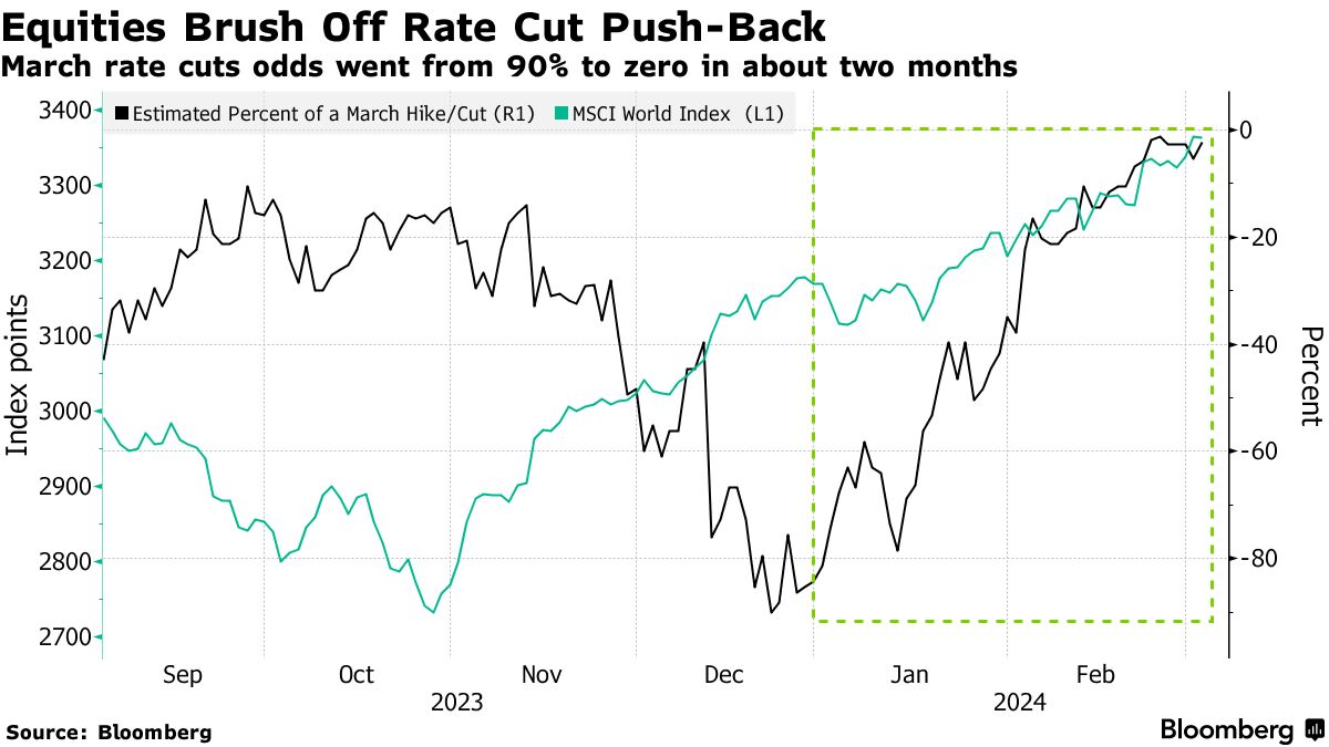 主要区域基准在周三创下新纪录后暂停,因为股市对今年完全重新定价的降息预期毫不动摇。