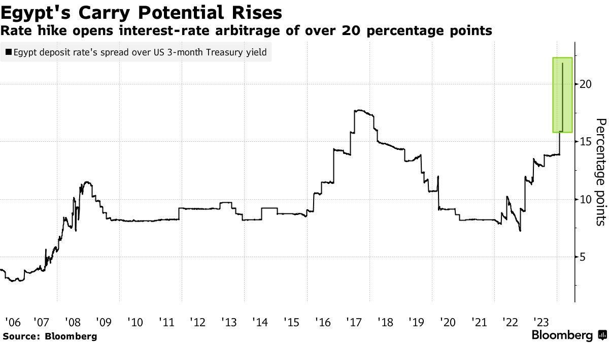 在情绪方面的一场游戏改变者,埃及通过加息和取消货币管制为更高的套利回报打开了一条道路。在与阿联酋达成价值350亿美元的投资协议后几天,它赢得了IMF的支持。