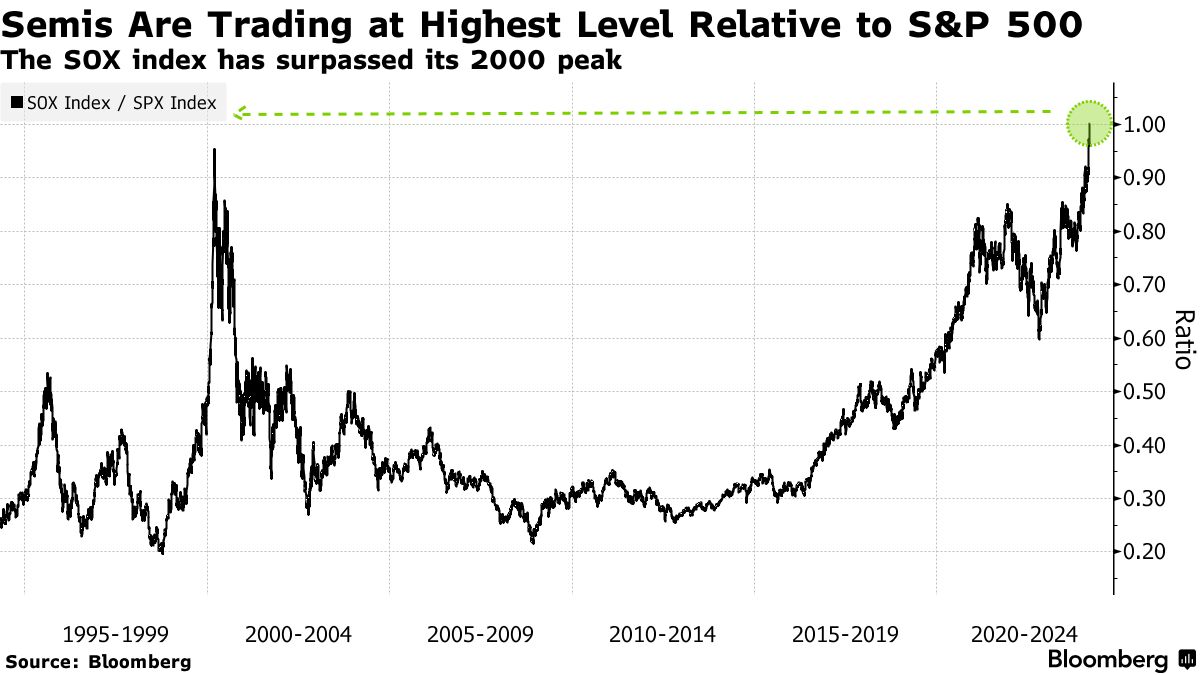 尽管半导体相对于标普500指数的交易水平创下历史新高,哈特内特仍然重申科技股可能还有更多上涨空间。