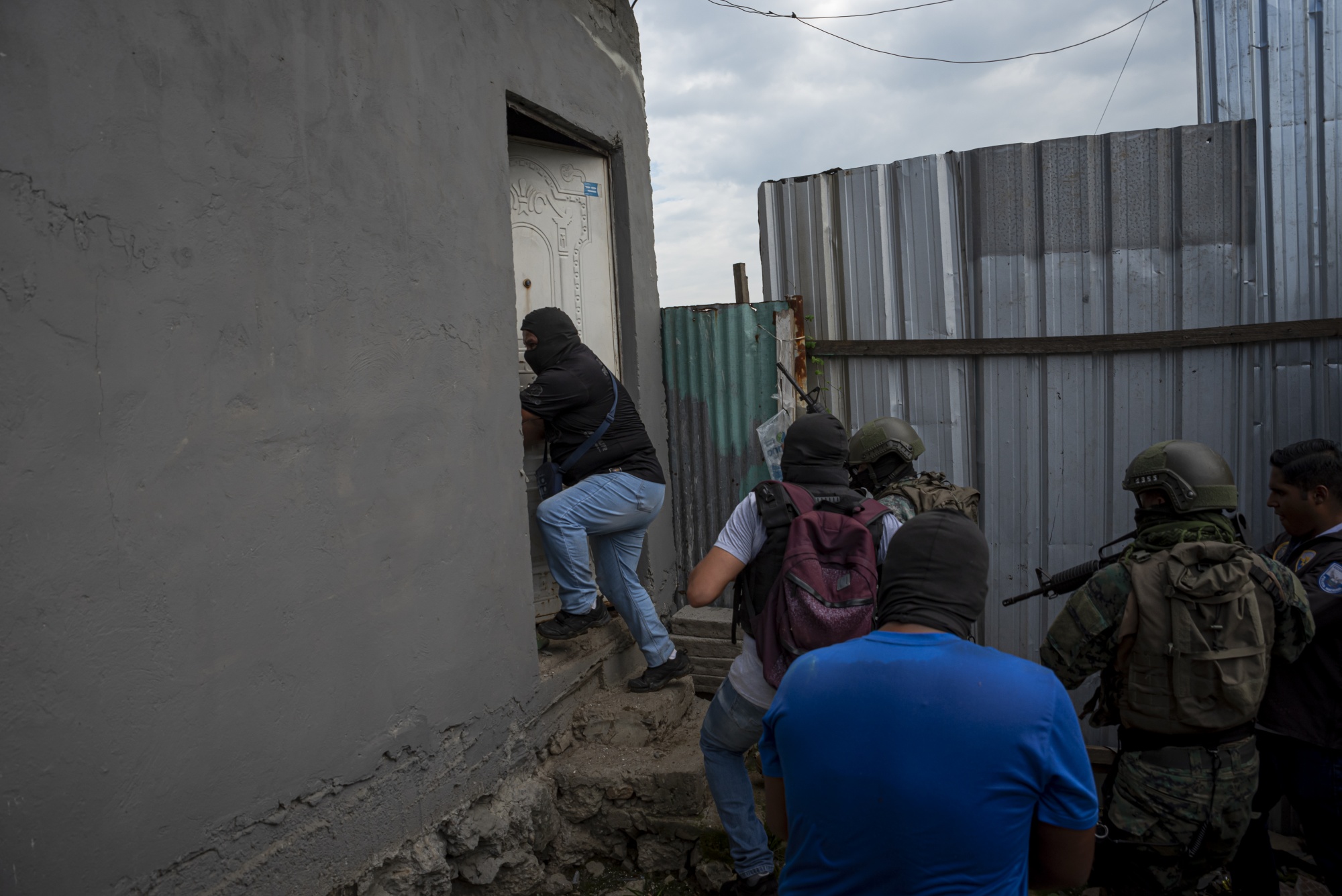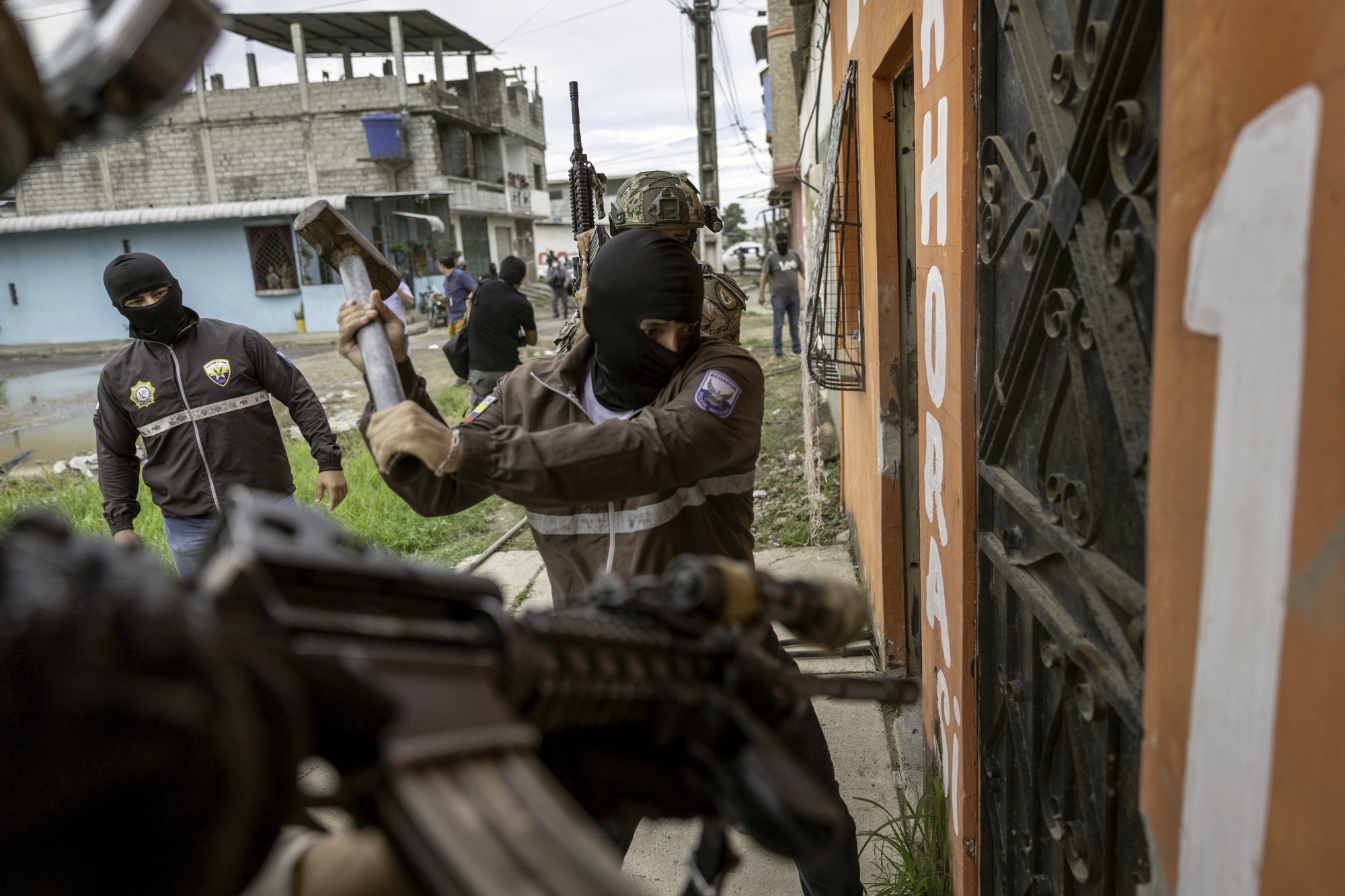 厄瓜多尔士兵在瓜亚基尔进行反黑帮行动中破门而入,日期为2月5日。