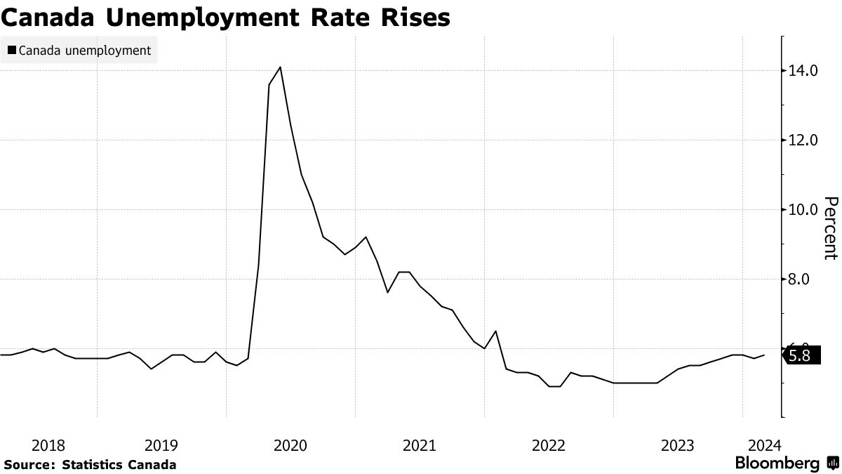 这是下一次加拿大央行4月10日利率决定之前的两份就业报告之一,届时决策者还将更新他们的预测。彭博调查中的经济学家认为,央行将在第六次连续会议上将政策利率保持在5%的水平,并且其中许多人预计放松周期将从随后的六月会议开始。