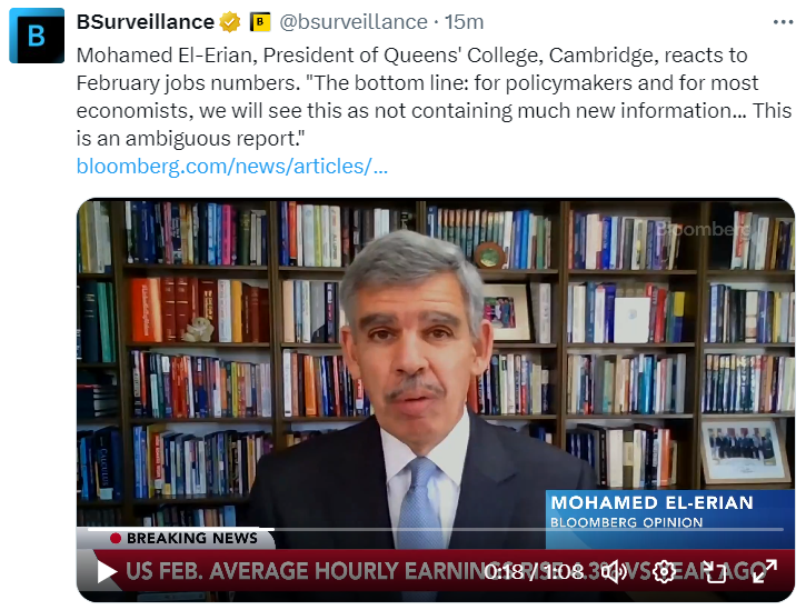 美国就业报告让联邦储备局“不会降息”的人群安静下来,埃尔-埃里安表示 - 彭博社