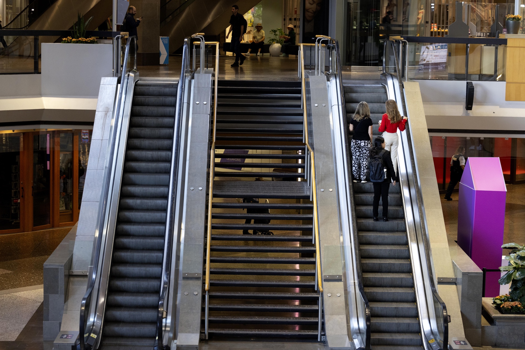 通勤者乘坐扶梯将地铁系统连接到加拿大魁北克省蒙特利尔的魁北克税务局办公室,时间是2023年7月19日星期三。多伦多基金公司KingSett Capital的私募股权执行官Rob Kumer表示,商场等另类房地产类型仍然为他的公司表现良好。