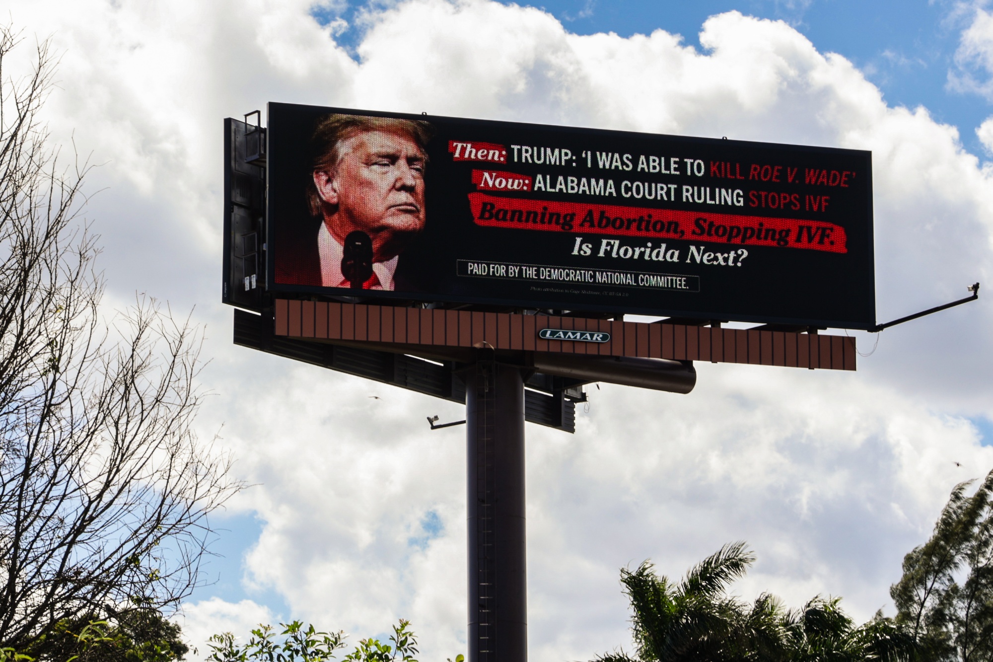 由民主党全国委员会赞助的广告牌,于2月27日在迈阿密市看到。摄影师:约翰·帕拉/盖蒂图片社“这是激励选民的最大问题之一 — 女性、男性,所有性别,”Swing Left的政治和战略负责人丹·卡利克说,该组织专注于支持关键州的民主党人。“这激励了志愿者,将在民主党需要赢得所有核心州的选票中发挥巨大作用。”