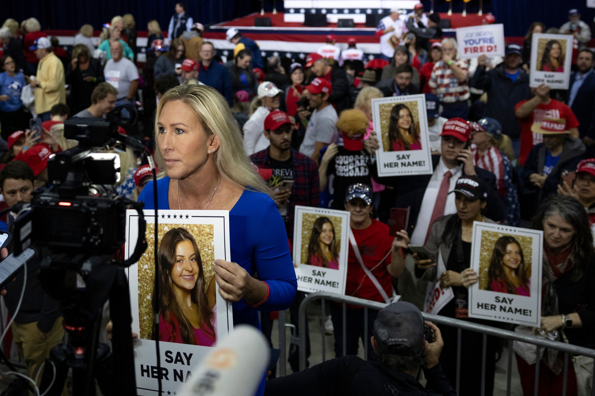 特朗普的行程带他到了代表马乔里·泰勒·格林的选区,格林在他的演讲中质问拜登关于一名乔治亚护理学生被委内瑞拉移民杀害的事件。
