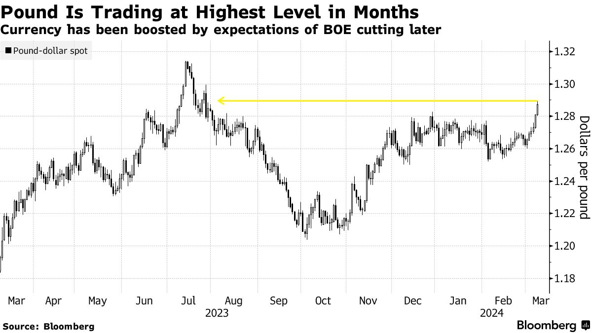 英镑今年击败了全球90%以上的货币,这表明英国经济的表现比预期更好,使得利率维持在较高水平更长时间。