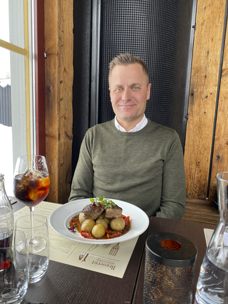 斯特滕的首席执行官约翰·索恩正在等待在2024年2月21日在Brasseriet餐厅享用午餐。摄影师:拉斯·保罗森索恩在十多年前接管了这家度假村的经营权,该度假村由两位挪威兄弟通过他们的Adolfsen集团持有,当时他才30多岁。他说,自那时以来,收入增长了超过300%。其中一个原因是附近的斯堪的纳维亚山脉机场,他的度假村持有少数股份。该机场于2019年底开放,有直飞航班从阿姆斯特丹、伦敦和哥本哈根等城市飞来。