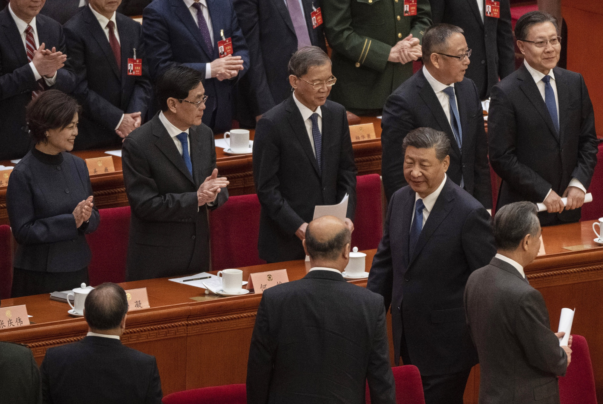习近平在3月10日中国人民政治协商会议闭幕会上受到代表们的掌声。