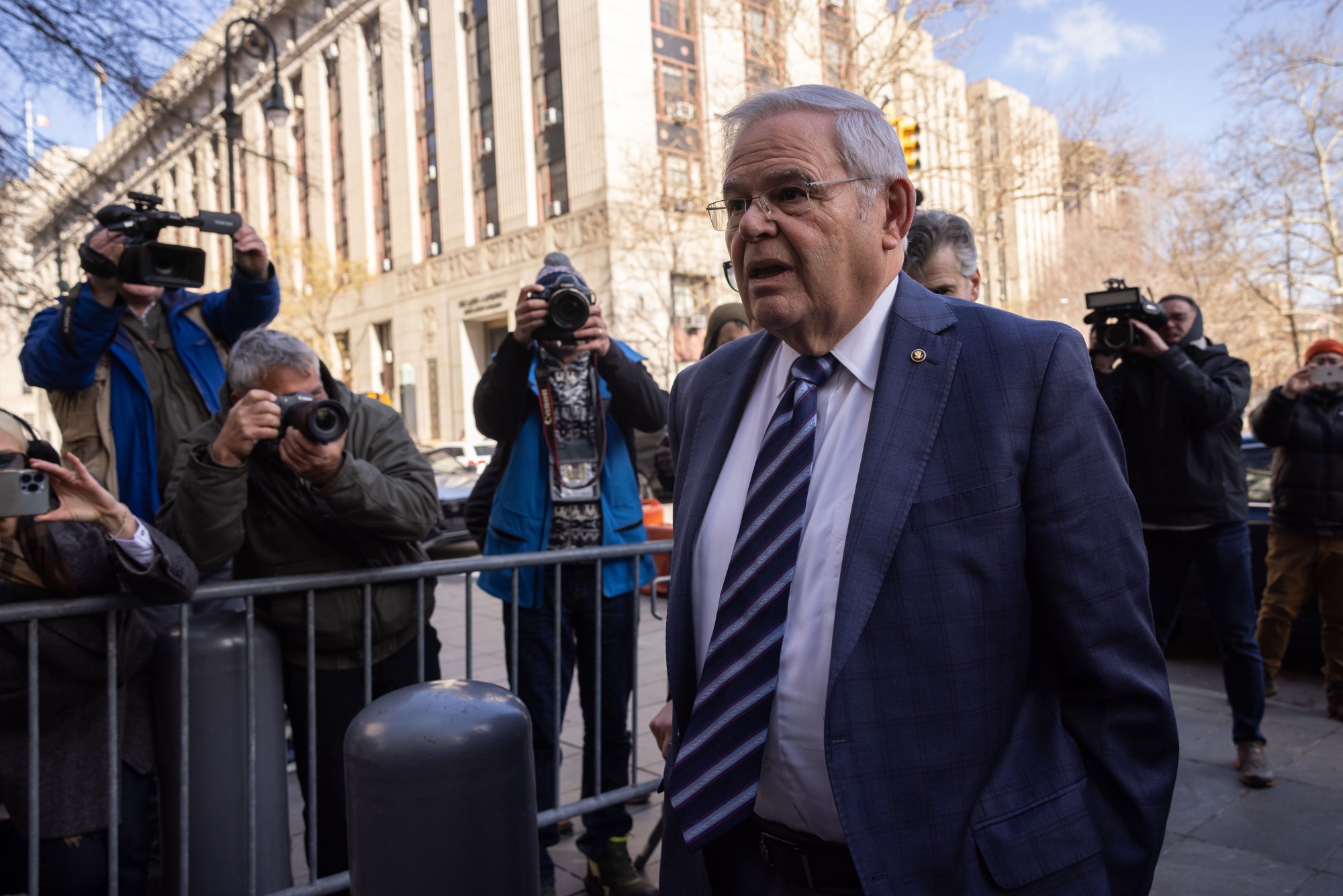 这位新泽西州民主党参议员在纽约联邦法院作出了他的答辩,美国地方法官西德尼·斯坦拒绝了梅嫩德斯推迟5月6日审判日期的请求。梅嫩德斯自2006年以来一直在参议院任职,拒绝在听证会后透露他是否会寻求连任。