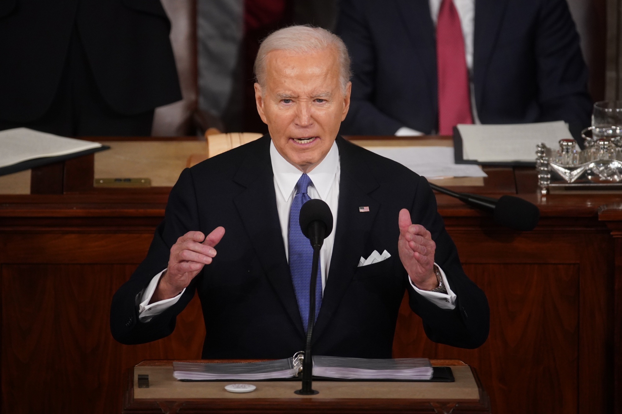 乔·拜登总统在2024年3月7日星期四在华盛顿特区美国国会大厦发表国情咨文。
