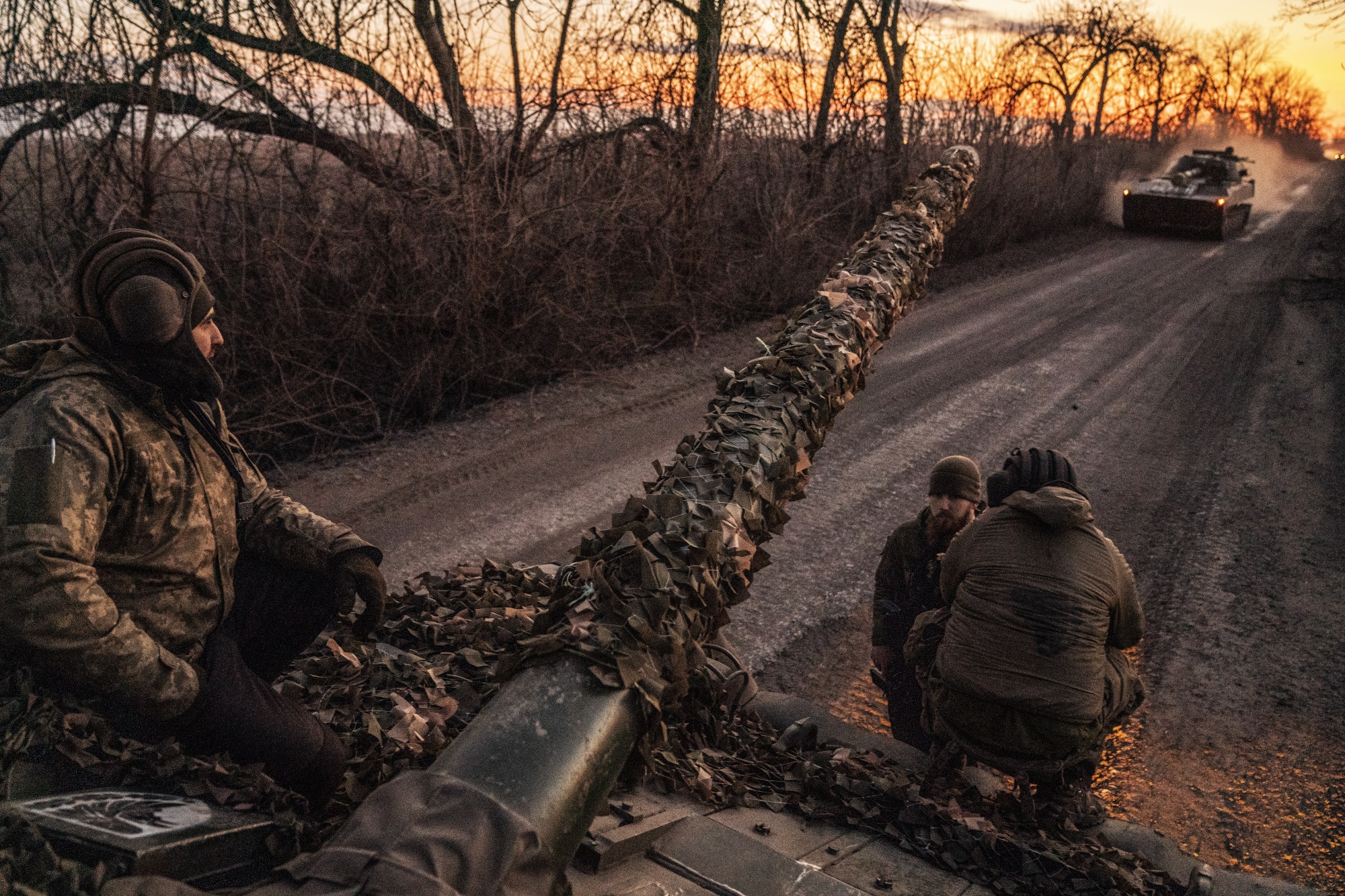 乌克兰坦克手们于3月9日驶向乌克兰顿涅茨克州的利曼。