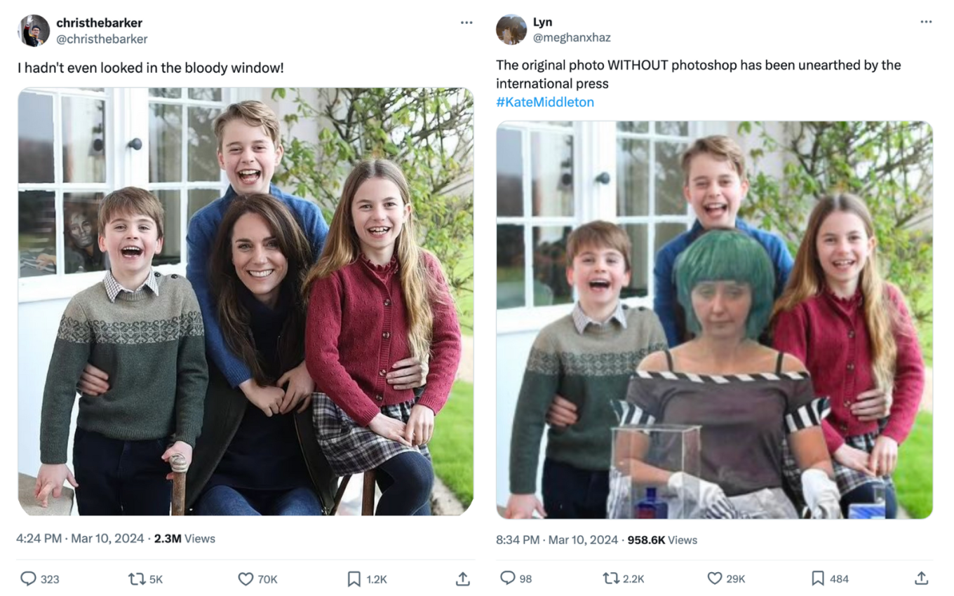 昨天,美联社发布了一份关于英国母亲节照片的“终结通知”,因为担心照片在某种程度上被数字修改。今天早上,威尔士王妃发推文说:“像许多业余摄影师一样,我偶尔会尝试编辑。我想表达我的歉意。”鉴于她接受腹部手术后健康状况的广为人知的猜测,这一回应引发了一连串问题:凯特是帕丁顿地板上的橘子酱吗?伊丽莎白二世是英国的克里斯·詹纳吗?法国会很快入侵吗?如果这是爱尔兰的复仇,你的奶奶预言了吗?为什么肯辛顿宫不直接发布一个视频展示凯特在母亲节,以结束所有的阴谋论呢?