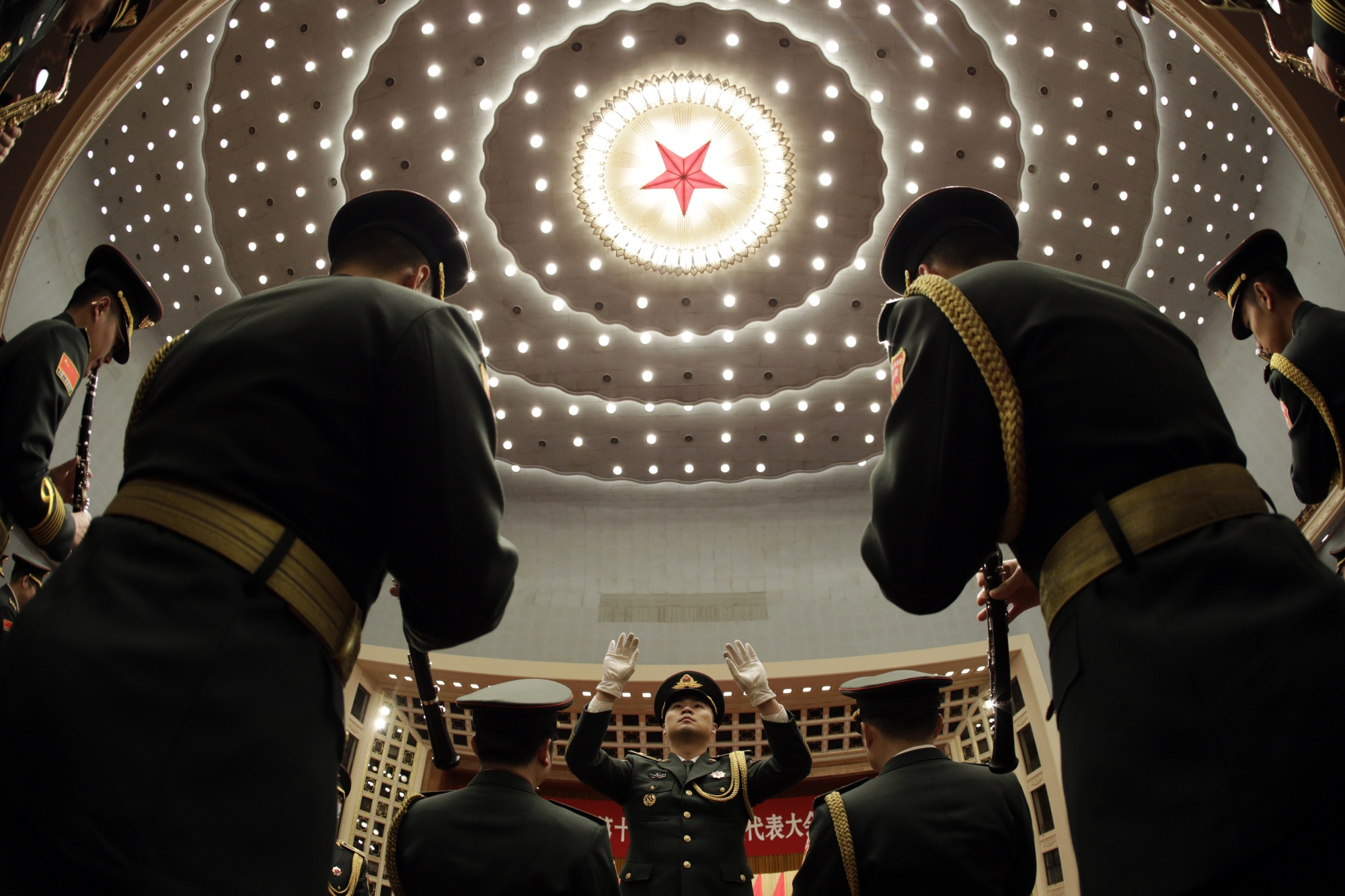 中国人民解放军(PLA)乐队成员表演。