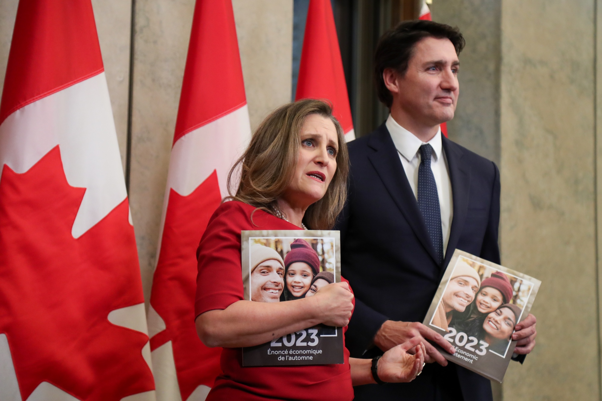 克里斯蒂娅·弗里兰,加拿大财政部长,和总理贾斯汀·特鲁多在11月份在渥太华发布2023年秋季经济报告之前。