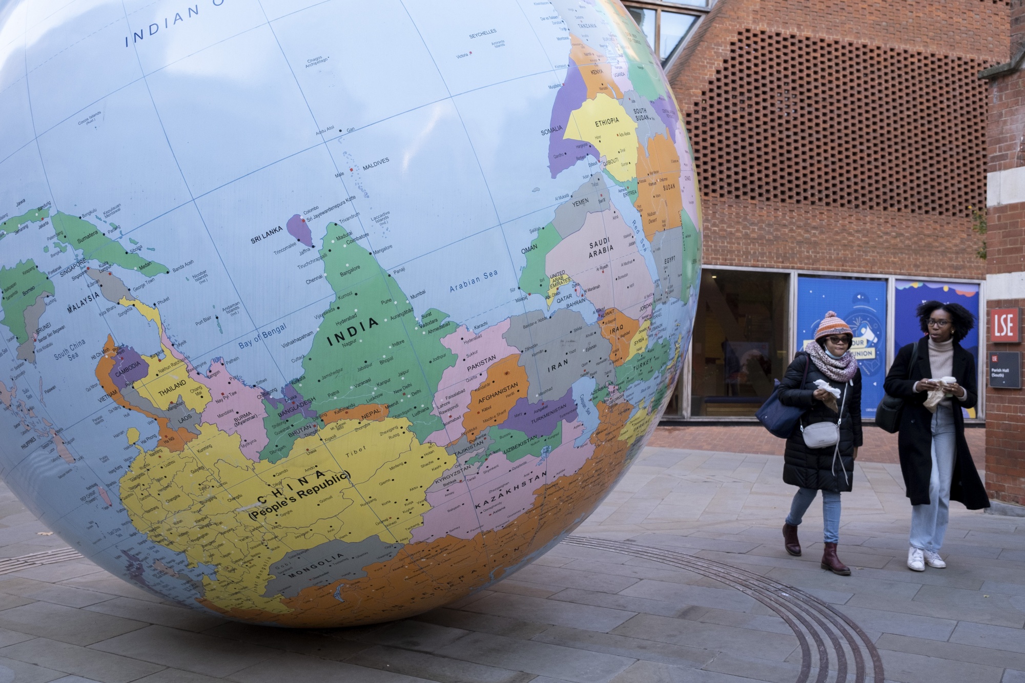 中国人民共和国和印度被艺术家马克·沃林格(Mark Wallinger)在伦敦的公共艺术雕塑《世界颠倒》上颠倒地看到,这是2022年的事。