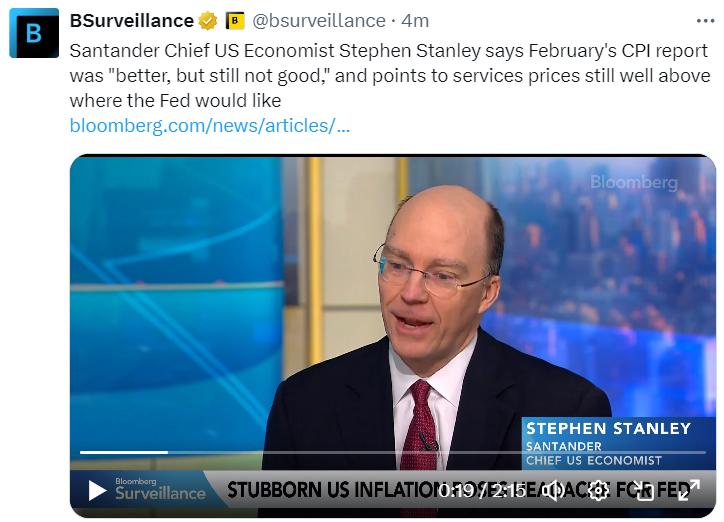 昨天就是一个关键例子。股市在比预期更热的消费者价格指数数据的推动下飙升,即使这意味着美联储可能不会那么快降息。有许多潜在解释,但这里有一个正在引起关注的观点:也许在5.25%和5.5%之间的联邦基金利率并不真的那么严格,在一个新的、增长更快的世界中,借贷成本需要更高。
