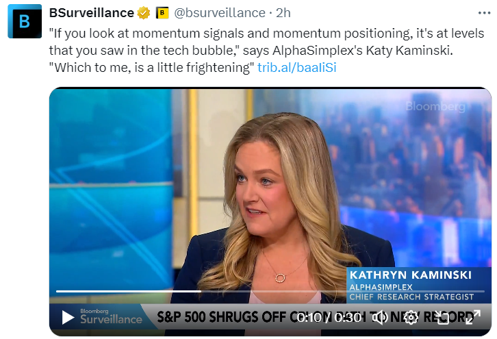 AlphaSimplex的凯蒂·卡明斯基得出了相同的结论。她说,这是一个合乎逻辑的想法,鉴于美国股市创纪录的上涨似乎有持续性,不受联邦储备委员会预期变化的影响。