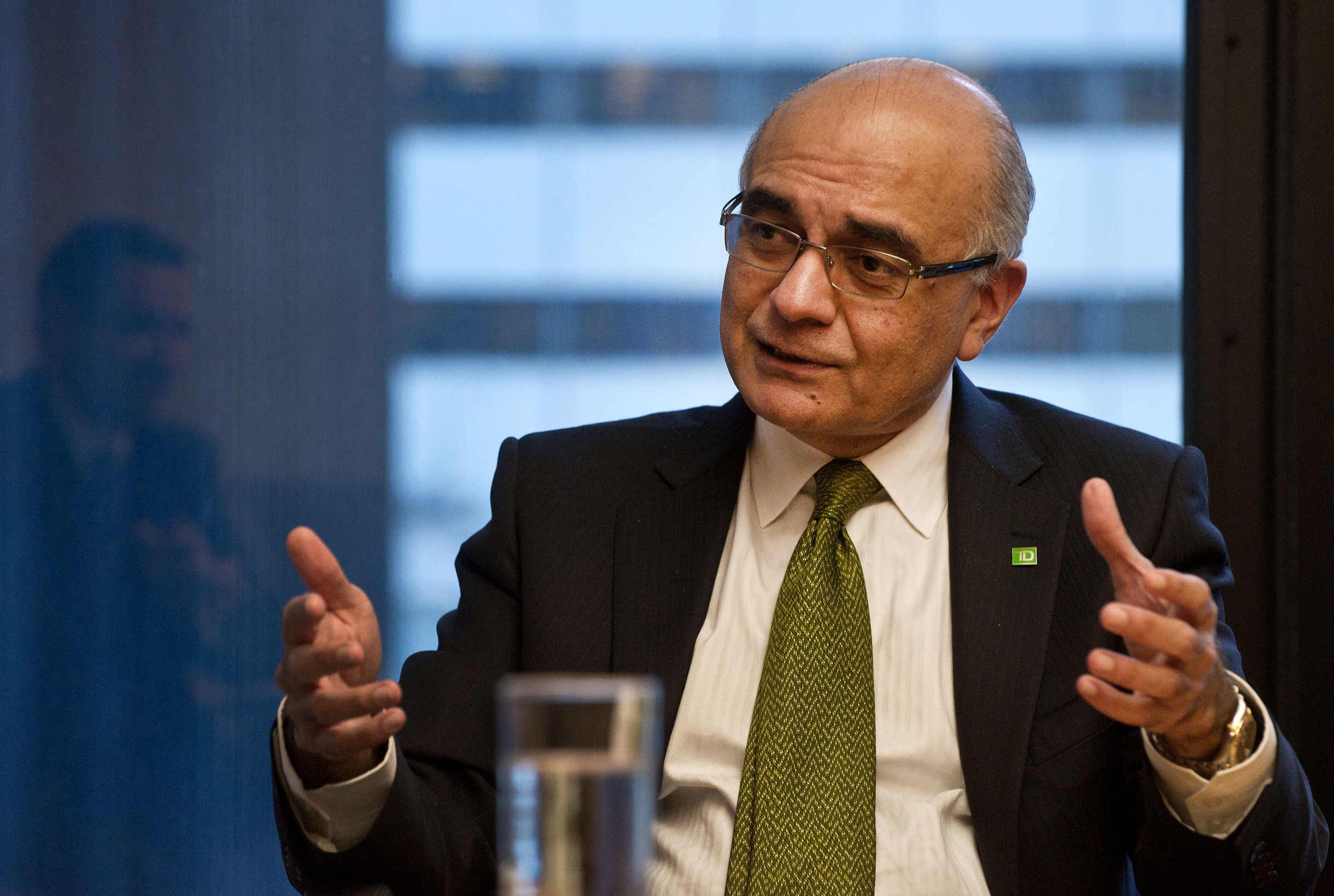 巴拉特·马斯拉尼在2014年10月21日接受采访时发表讲话。摄影师:加利特·罗丹/彭博社多伦多道明银行首席执行官巴拉特·马斯拉尼去年因该银行放弃收购First Horizon Corp.以及面临的美国反洗钱控制调查而减薪。