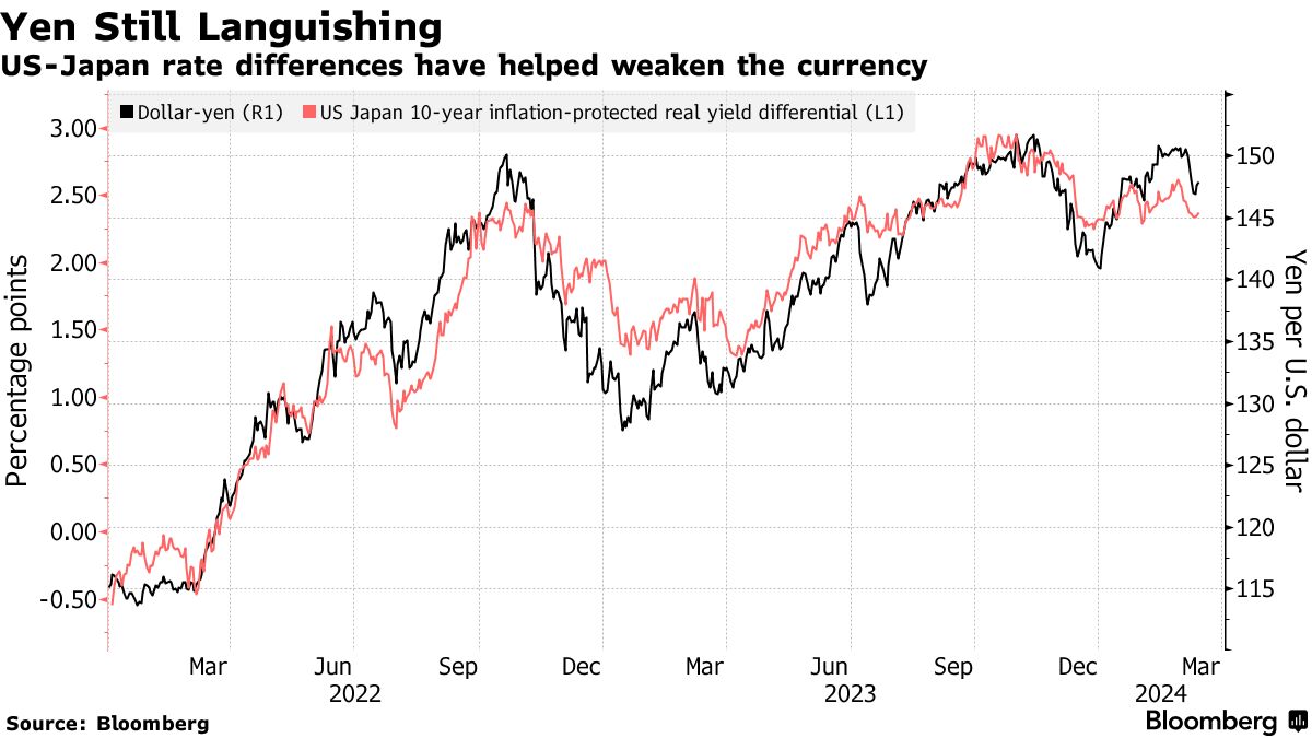 日本最大的出口商和在全球拥有大量业务的公司,如丰田汽车公司、软银集团和东京电子公司,受益于数十年来日元最疲软水平,这种货币因素会在转换成日元时增加其海外收入。