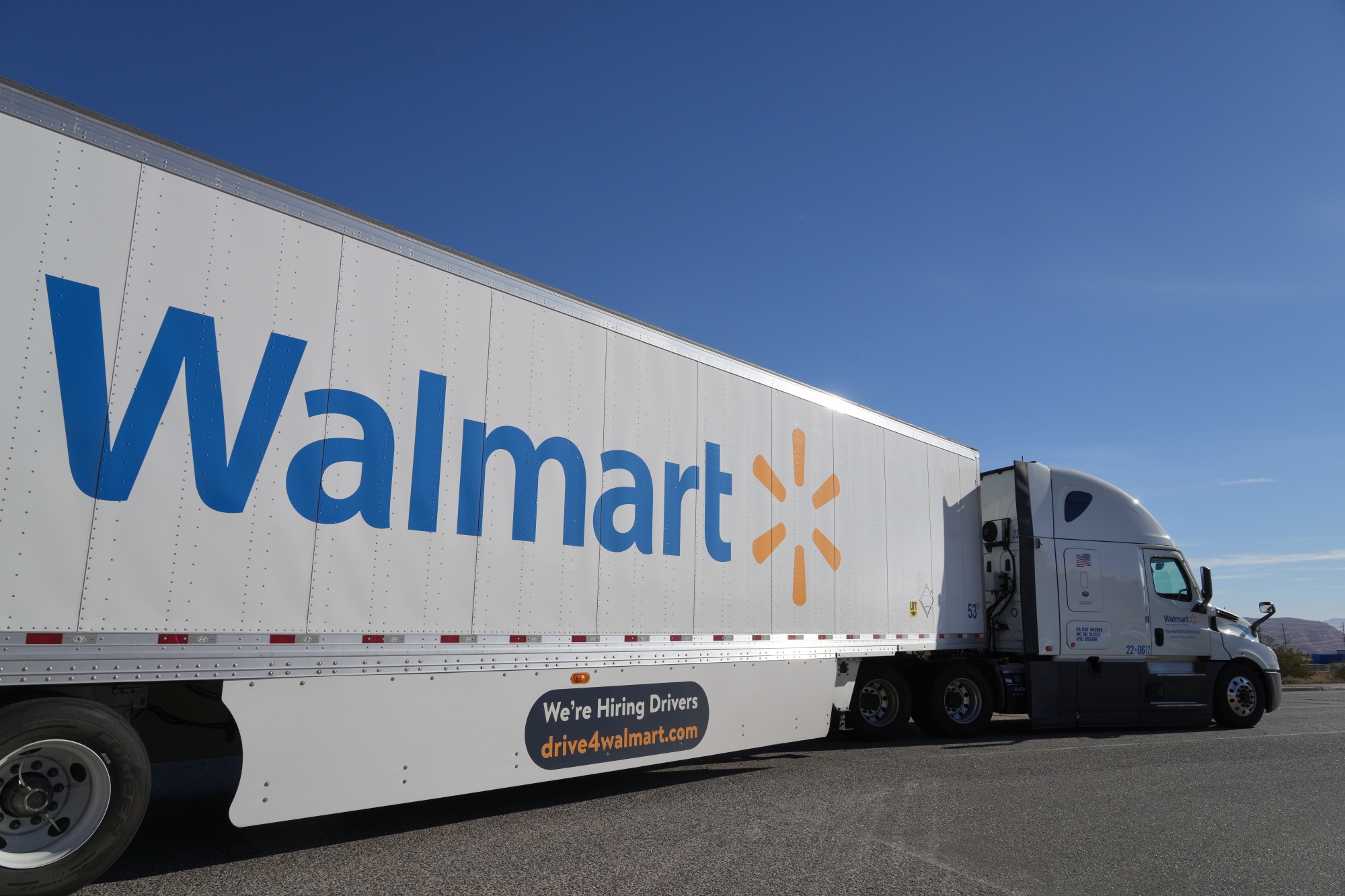 沃尔玛卡车离开美国犹他州圣乔治的一个配送中心。