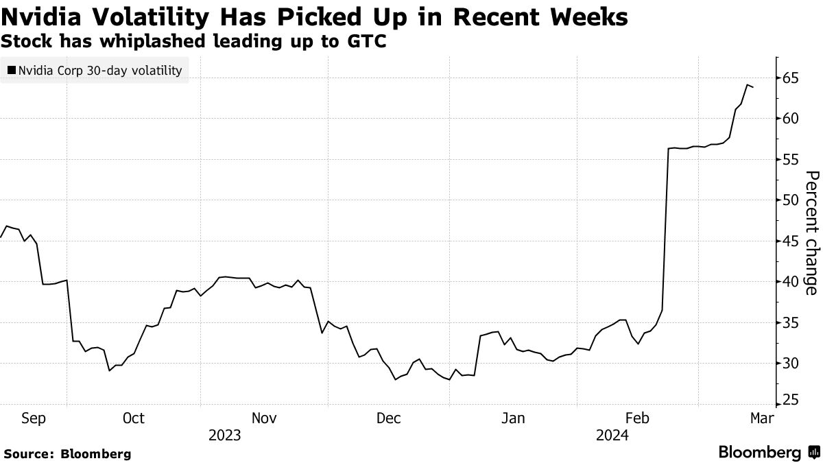 “英伟达GTC”,该公司的图形处理单元技术活动,迅速成为全球开发者的人工智能大会。活动将于3月18日至21日在加利福尼亚州圣何塞举行,首席执行官黄仁勋将在开幕日发表讲话。他的讲话可能有助于英伟达股票结束波动期,并恢复今年逾80%的激增。