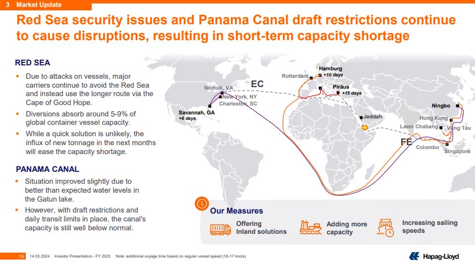 - DP World Group 主席Sultan Ahmed bin Sulayem:“尽管2024年初因持续的红海危机而不确定,但我们的投资组合继续表现出弹性。由于具有挑战性的地缘政治和经济环境,前景仍不确定。”