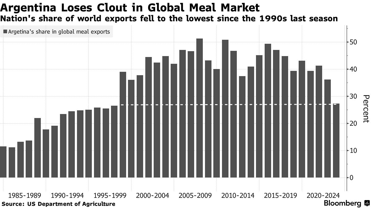 三十多年来,阿根廷在饲料贸易中占据主导地位,这是由于大豆过剩、税收激励措施以及国内加工能力的迅速增长导致的。