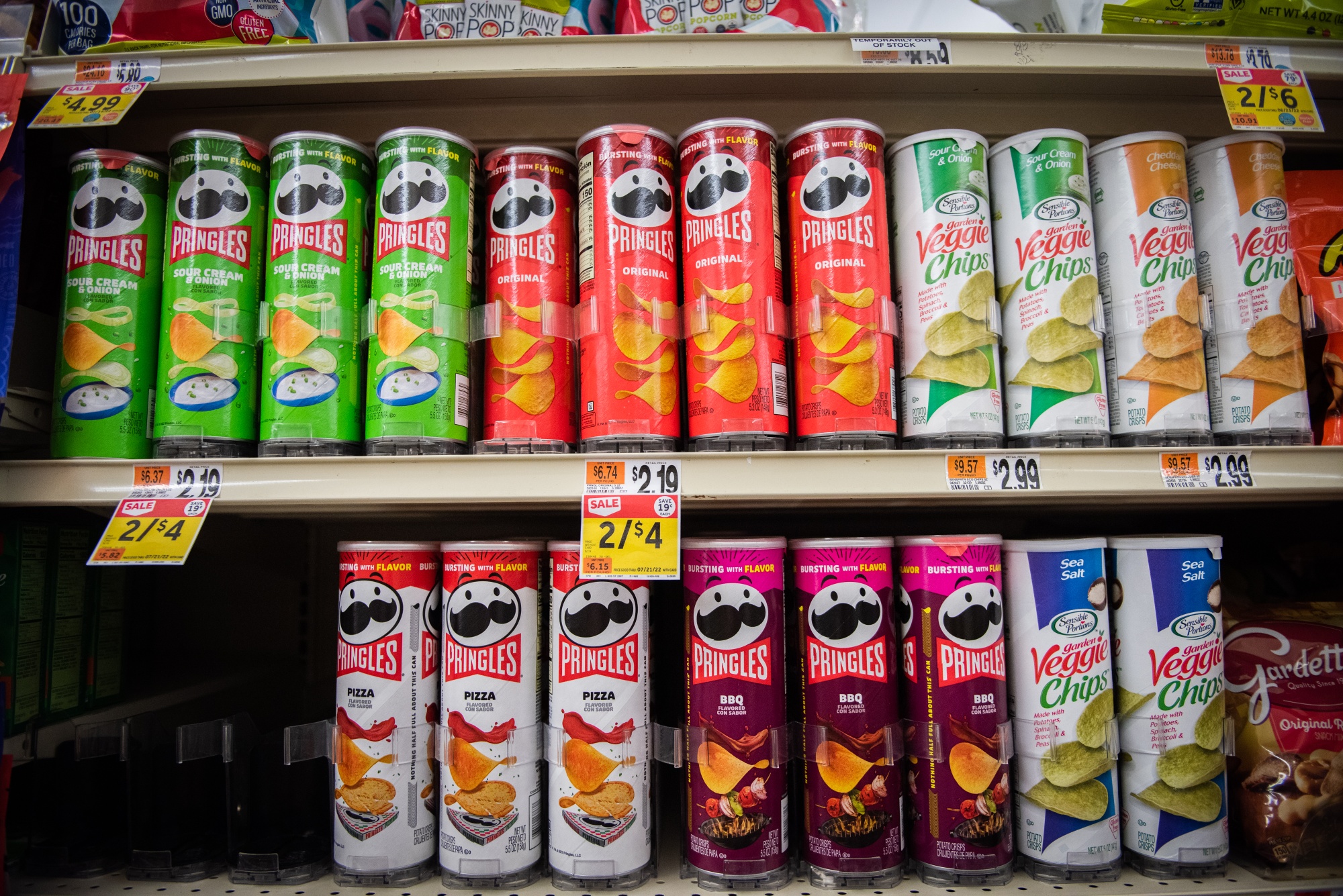 在美国纽约州多布斯费里的一家超市出售Kellogg品牌的Pringles薯片,日期为2022年6月22日。