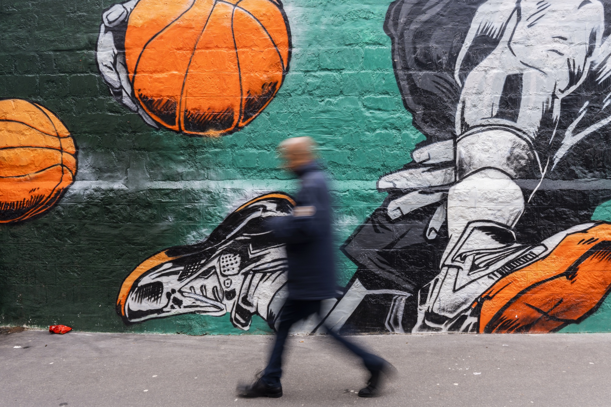 巴黎夏比勒门区的壁画,该区的奥林匹克场馆将在今年比赛结束后举办该市新兴篮球俱乐部。