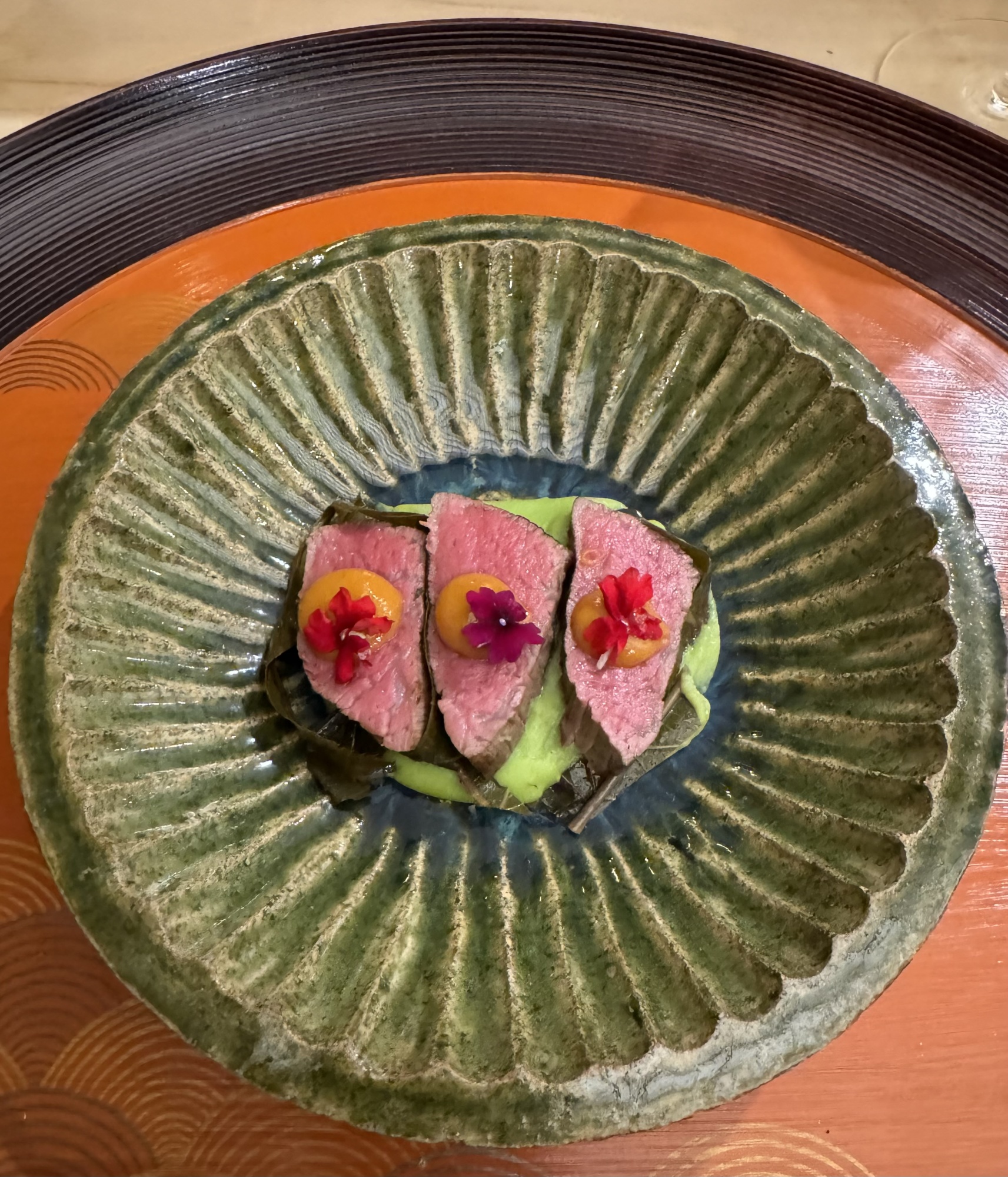 Roketsu的和牛和花霍华德·蔡-欧恩/彭博社拍摄这个瞬息万变的精确时刻发生在Roketsu厨师林大介与他的导师村田良宏一起工作时。这是一个感人的师生共生的展示,他们平静地展示了一场10道菜的懷石展示,这是一种根植于禅宗佛教以及帝国和武士文化的烹饪传统。它那令人费心的美味被认为是日本料理的典范,现在其影响已经遍布全球。村田在日本的三家餐厅共获得了七颗米其林星,其中包括他的百年老店、旗舰店Kikunoi Honten的三颗星。尽管有着崇高的烹饪血统,但林大介的Roketsu并没有获得任何星级评定,这家餐厅于2021年12月开业,当时新冠疫情仍然使人们远离餐厅。或许希望纠正这种情况,村田在一场仅限邀请的晚宴上告诉客人,他的门徒是整个欧洲唯一真正的懷石厨师。