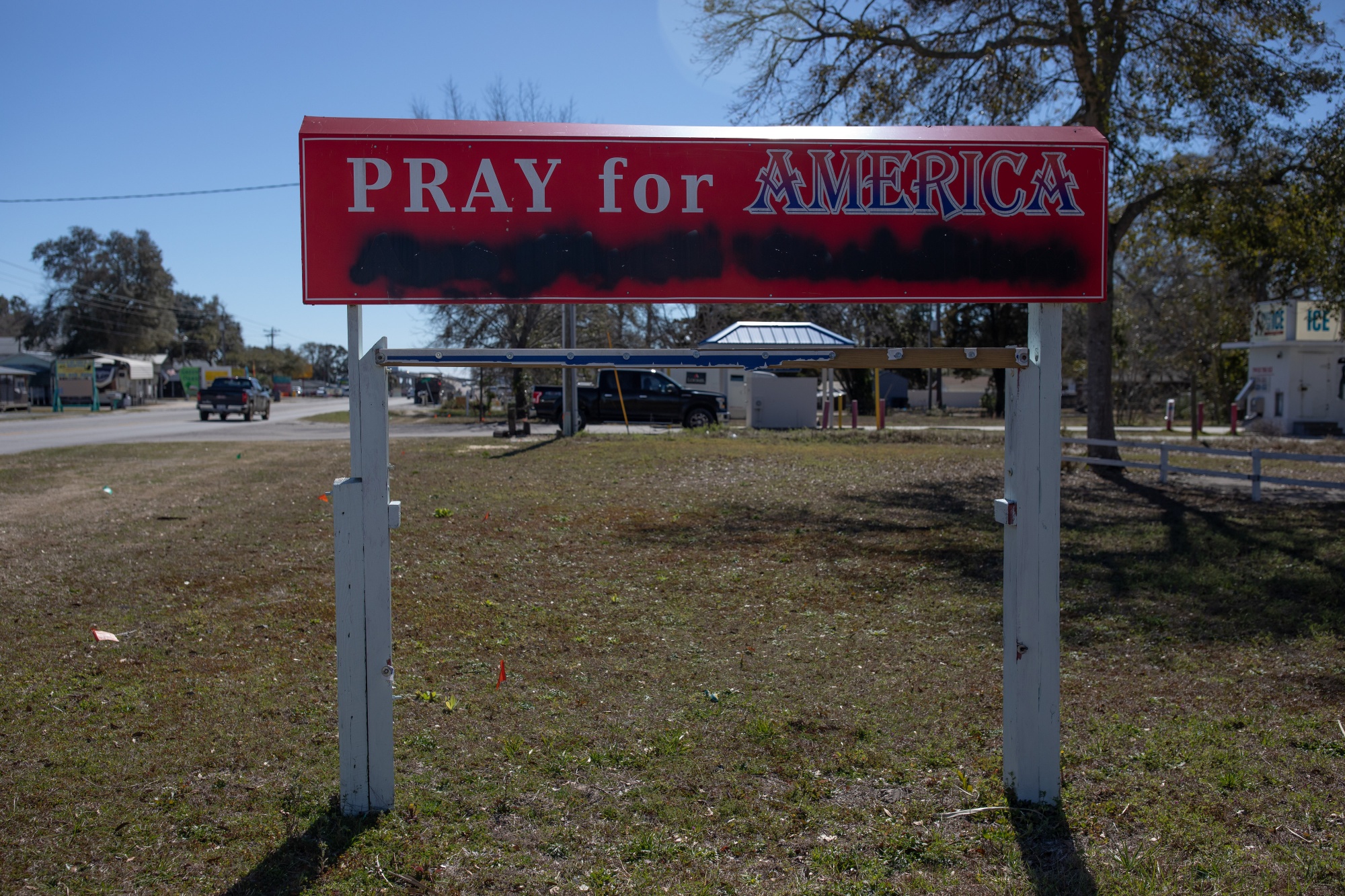 71岁的巴里·迈耶最近从佛罗里达的一个庞大退休社区The Villages迁移过来。尽管他的新家不那么党派化,但他说民主党的庭院标志是不可接受的。