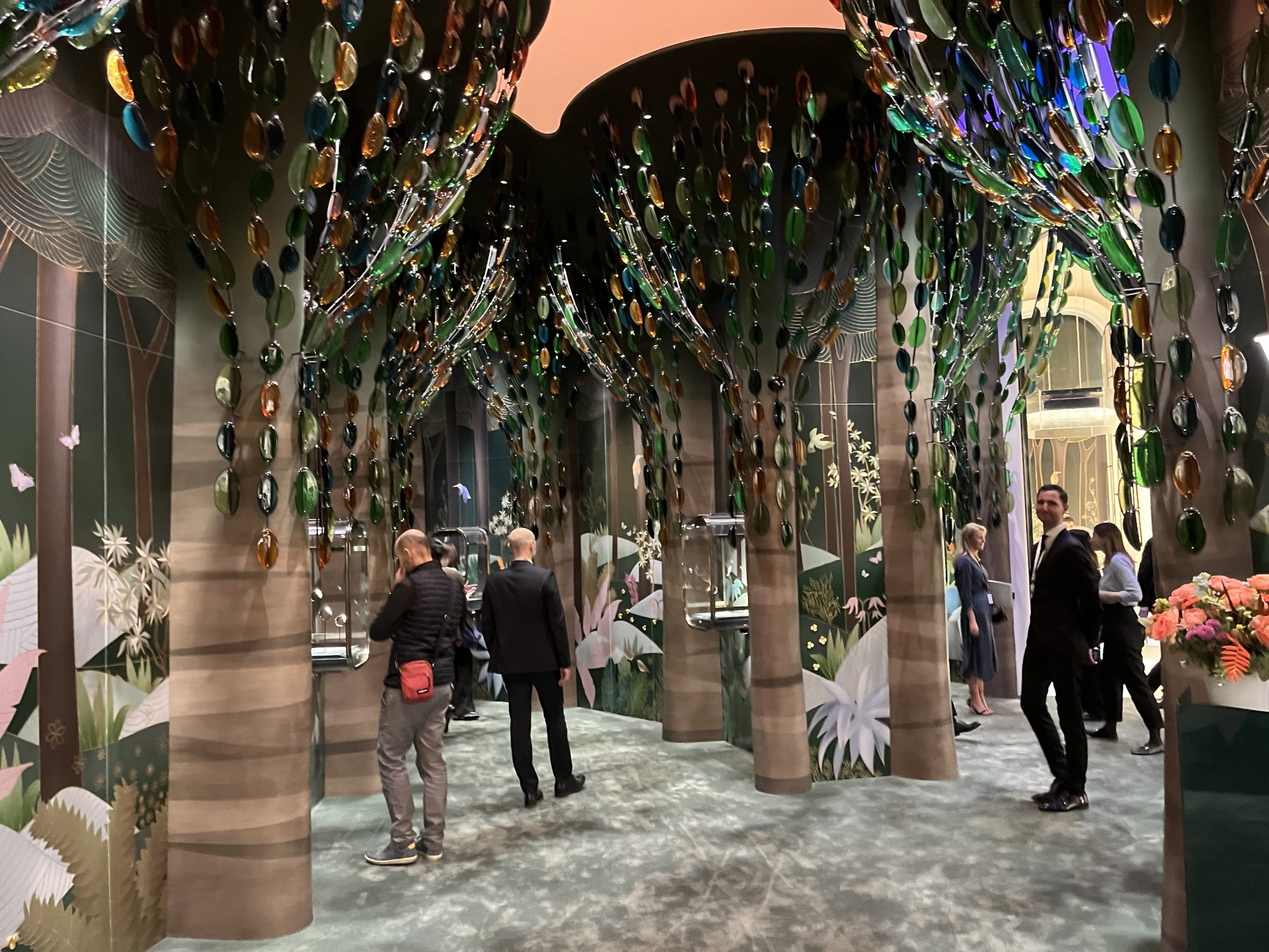 梵克雅宝在Watches and Wonders展会上的展位总是呈现出一场奢华的冒险。品牌们建造出巨大而精心设计的临时建筑(称为“展位”),高度可达四层。摄影师:克里斯·罗夫扎尔/彭博社彭博社的 安迪·霍夫曼 和我将在接下来的几天里赶去约会和采访,通常是连续的半小时时间段。来自54个品牌,从像香奈儿这样的大型知名品牌到像赛勒斯日内瓦这样的小独立品牌,都将有指定的展位,规模从适中(像我的公寓大小)到巨大(想象一下精品酒店)。总会有一些重要的名人在四处闲逛;我曾在巴勒博展览中心见过朱莉娅·罗伯茨、瑞恩·雷诺兹,甚至大卫·贝克汉姆。你必须轮流佩戴你最好的手表,以及最舒适的礼鞋。我一定会在其中某一天炫耀我的M.A.D. 1红色手表。(尽管所有的运动,只佩戴一块苹果手表作为你的唯一时间表是不可接受的。)