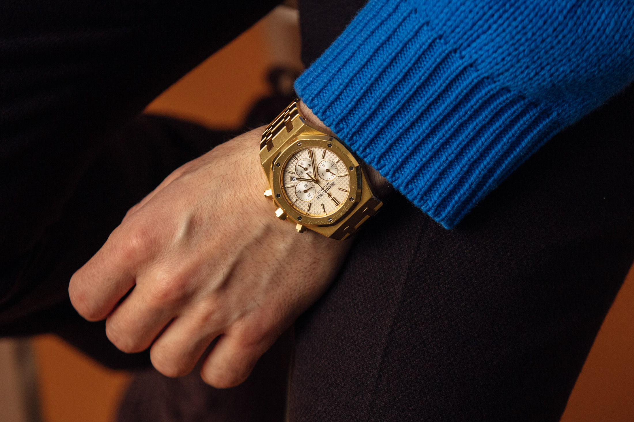 亚当·戈德斯顿的爱彼皇家橡树计时码表。来源:APL“我认为这就是手表的魅力所在:你真正喜爱的手表会陪伴你度过所有重要时刻,甚至在平凡的日子里,”他说。“我从未出售过我的任何手表,因为它们不仅仅是物品,它们是我故事的一部分。”