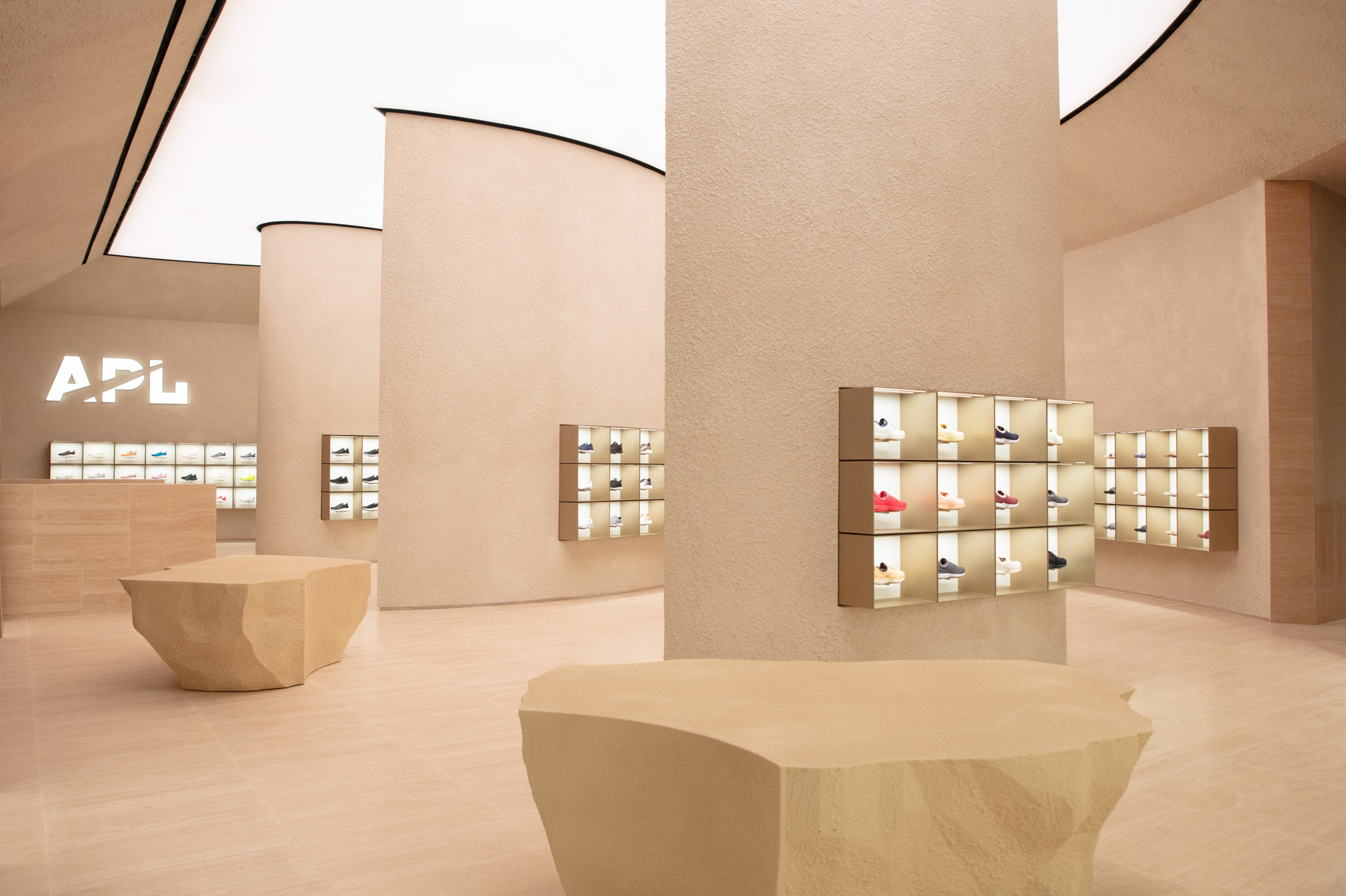 Ryan Goldston的Royal Oak。来源:APL本月,APL作为一个品牌庆祝其成立15周年,亚当和瑞安最近带我参观了他们在曼哈顿SoHo区非常酷的精品店。设计“灵感来自梦境”,所以所有线条都是波浪状和圆润的,米色墙面质地蓬松,像波纹云一样。彩色鞋子本身展示在刷铜盒子中——Goldstons告诉我,这一特点是受到他们的Royal Oaks的启发。