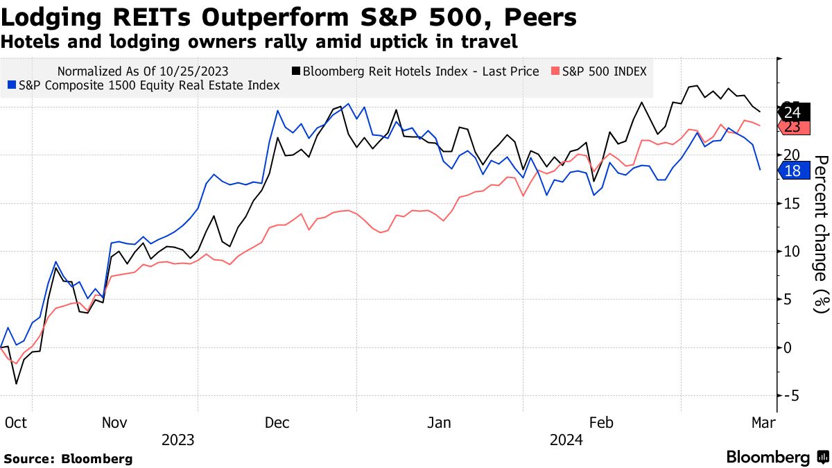 住宿房地产信托基金的上涨受到了企业旅行的稳步回归和前景的推动,即美联储将在今年开始降低利率的可能性。这对这个行业尤为重要,因为它对借贷成本非常敏感。