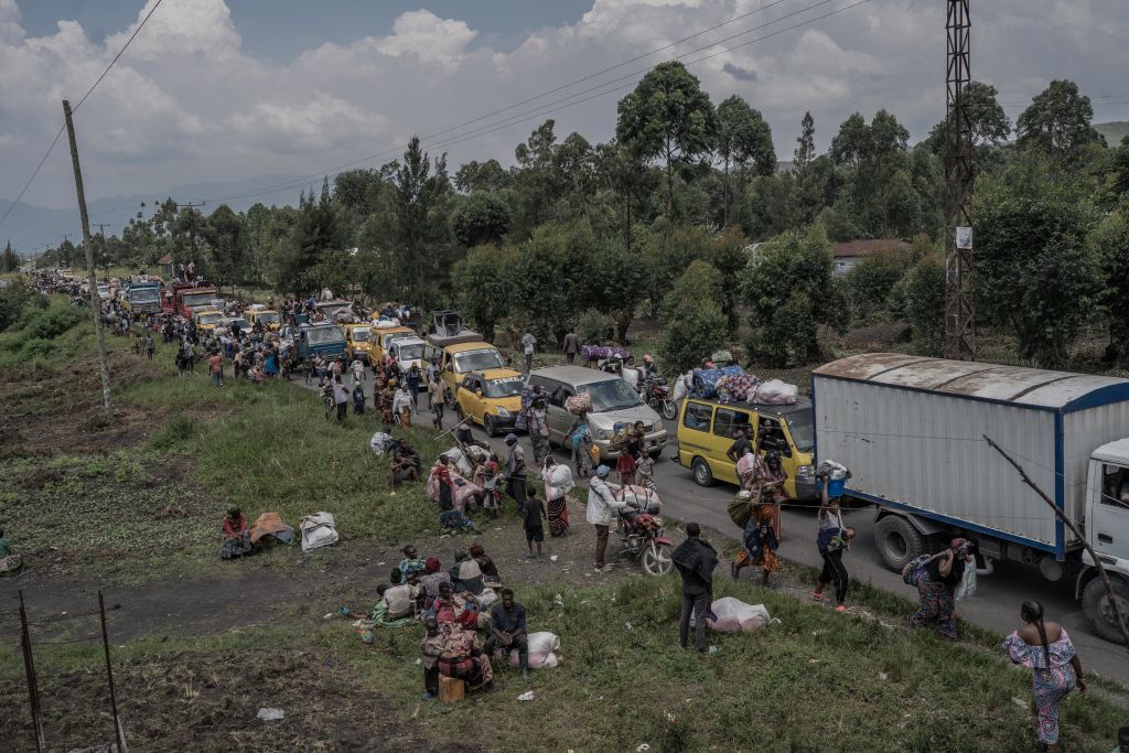 人们逃离马西西领地,因为M23叛军和政府军在Sake附近的一条道路上发生冲突。