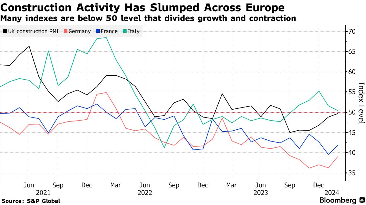 在欧洲,高盛集团本周表示商业地产估值已经接近底部。黑石集团总裁乔恩·格雷告诉彭博电视,现在是购买房地产的时候。他们并不是唯一看到价格下降放缓或完全停止的人。这些观点支持了因希望央行今年晚些时候降息而带来的初现乐观情绪。